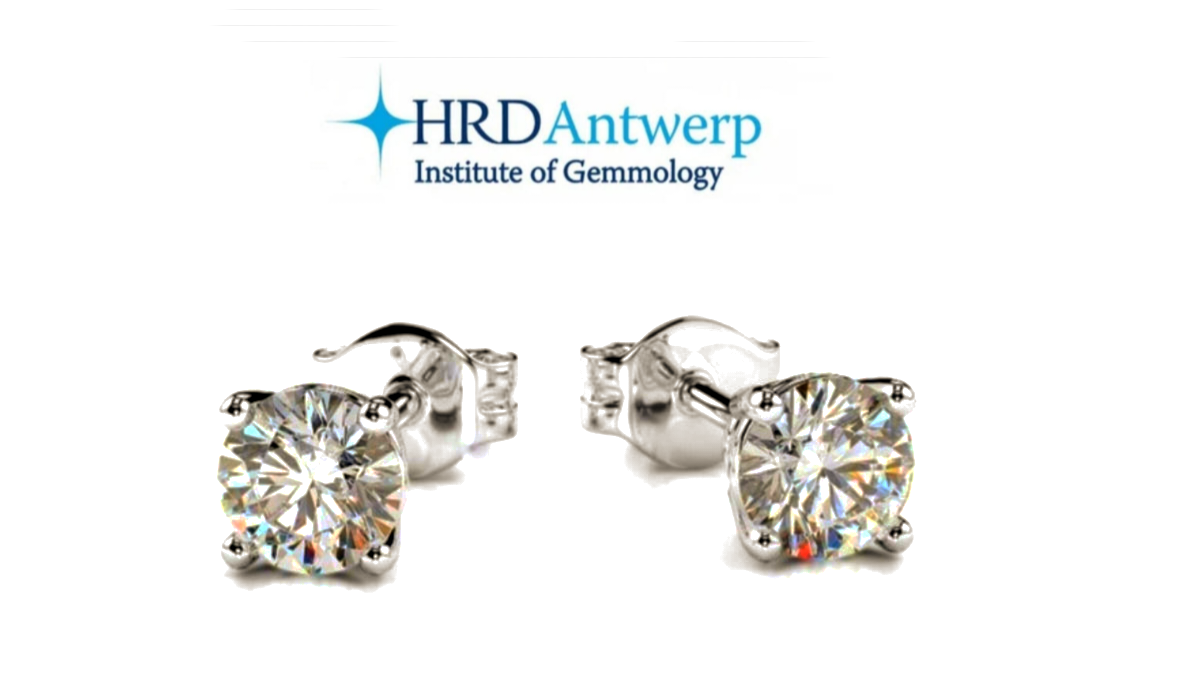 HRD certified light point earrings in 18k white gold with 2 natural diamonds 1.00 ct