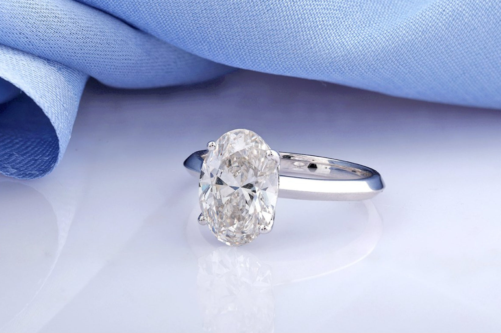 Anello solitario in oro bianco 18k e diamante naturale taglio ovale 2.00ct
