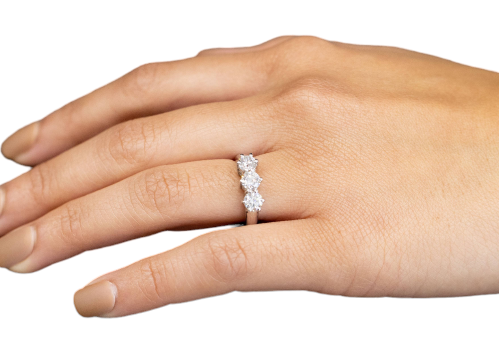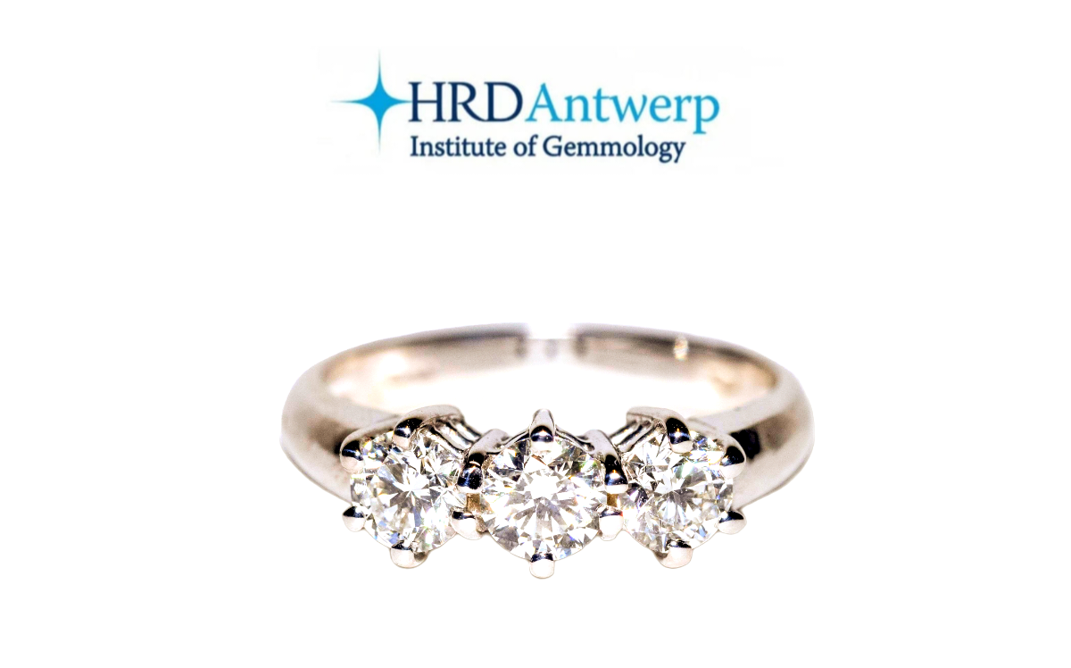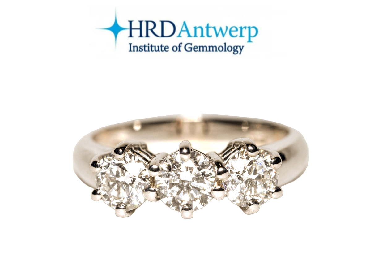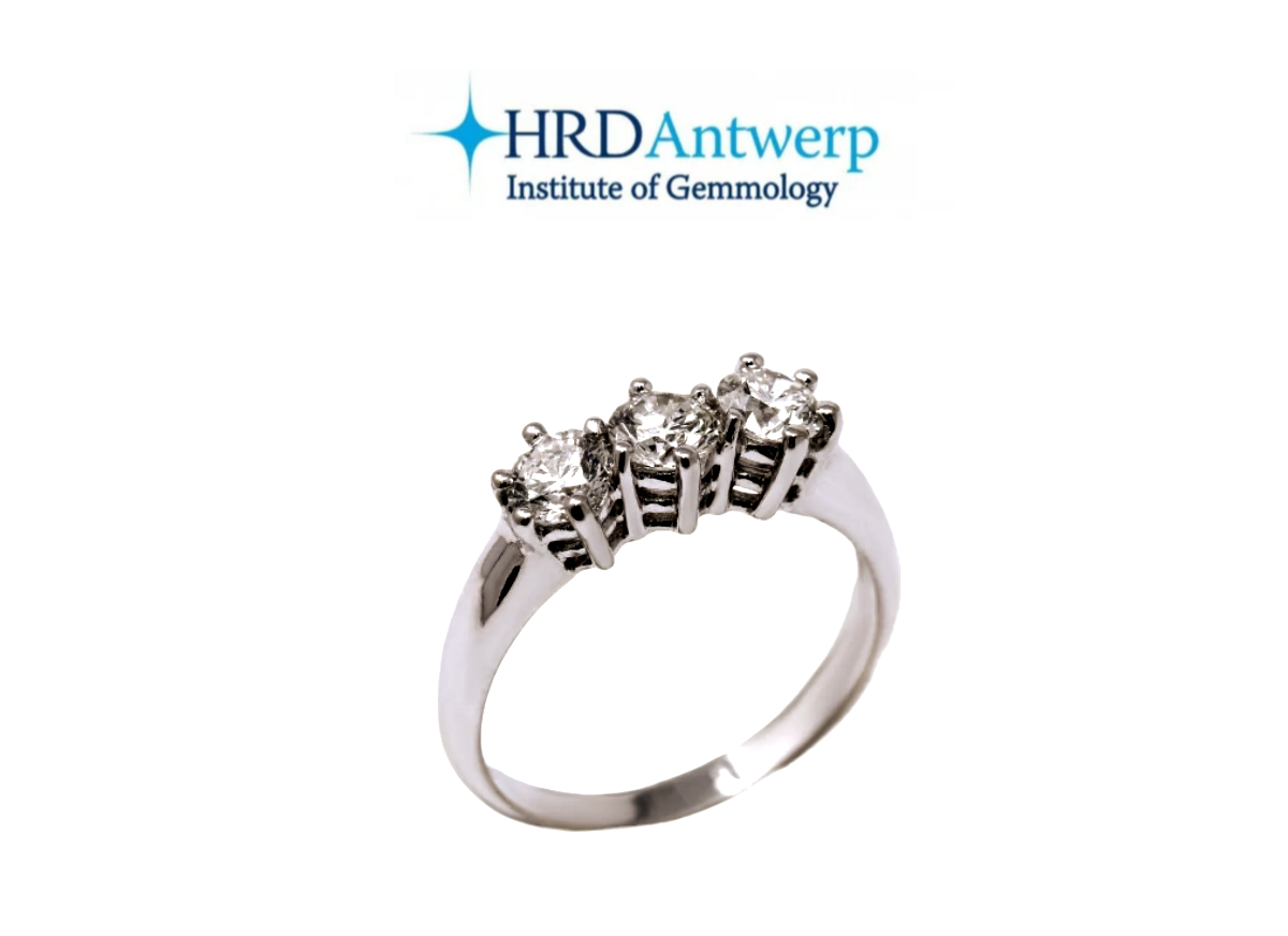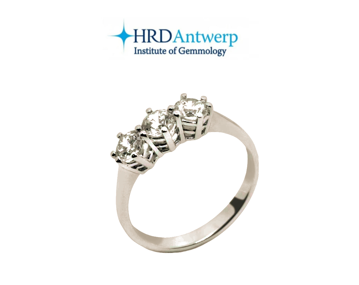 Anello Trilogy certificato HRD con 3 diamanti naturali 0,94 ct