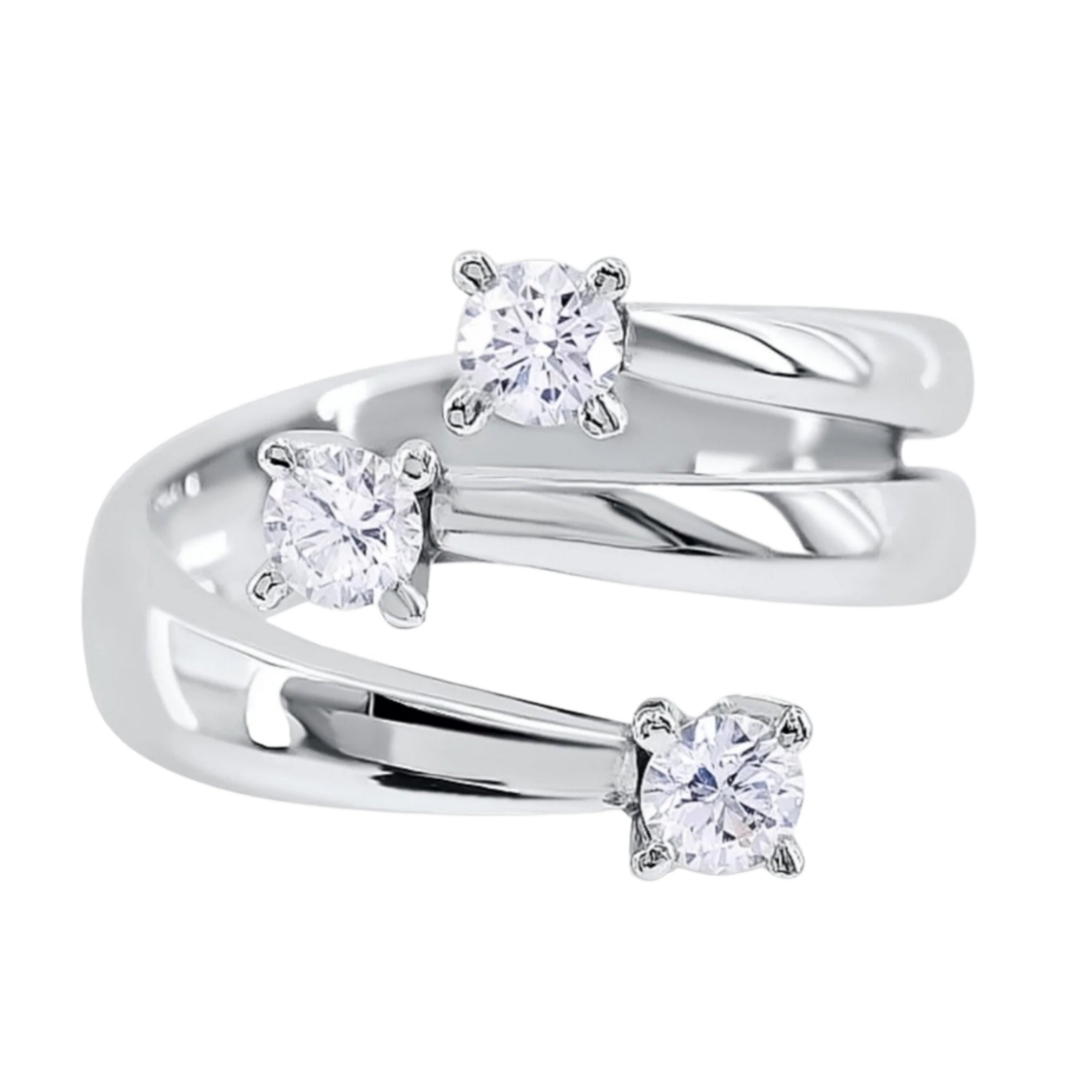 anello trilogy in oro bianco 18k e 3 diamanti naturali 0,45ct