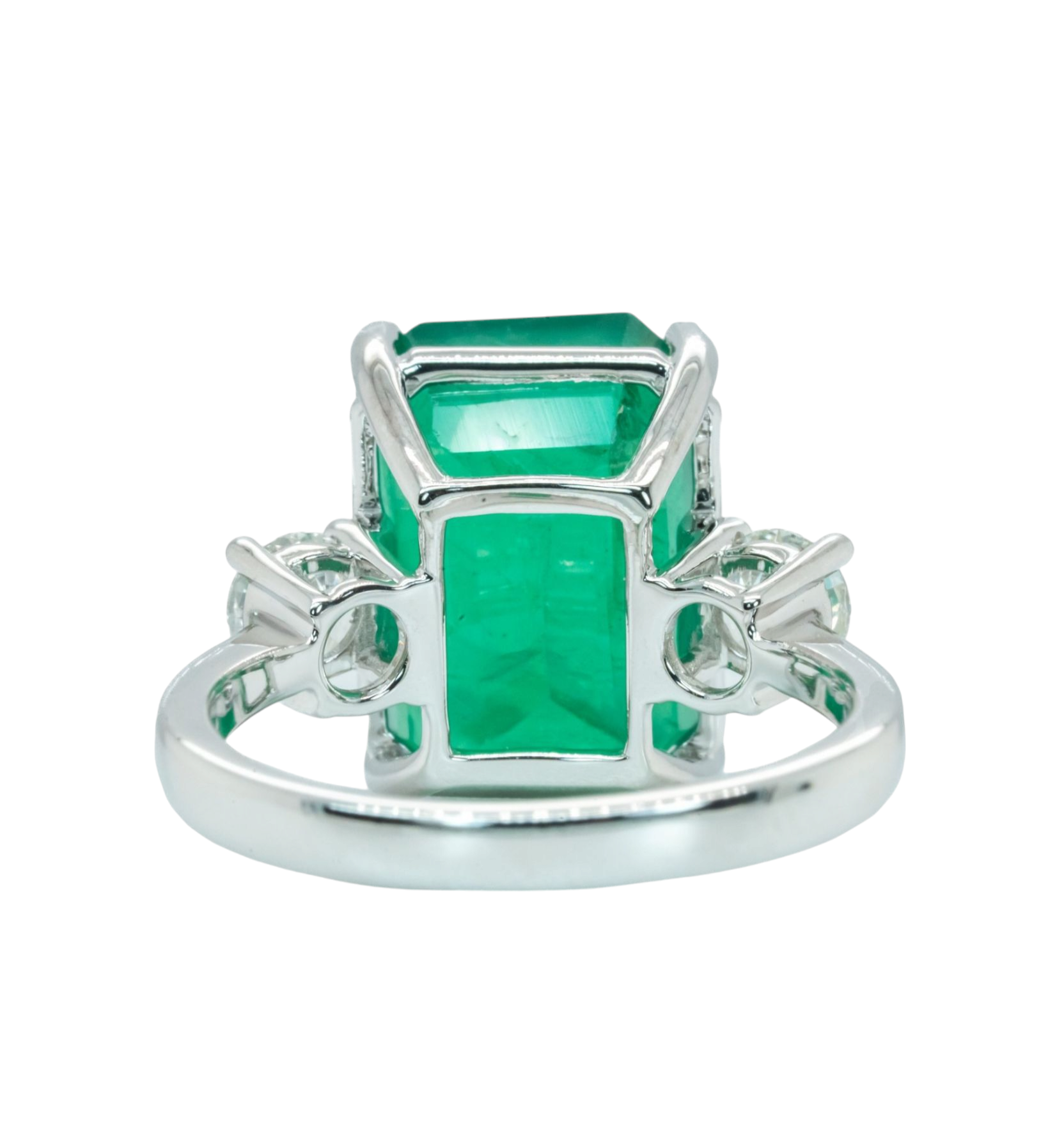 Anello trology in oro bianco e smeraldo 8.60 ct e diamanti naturali 0.70ct