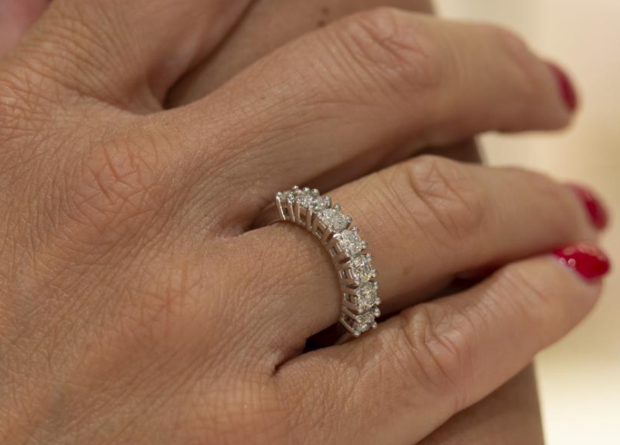 L’anello veretta a cinque pietre è solitamente realizzato in oro bianco, le gemme sono diamanti di taglio brillante disposti uno accanto all’altro e la loro dimensione è uniforme. Questo modello raffinato ed elegante è solitamente un dono che l’uomo offre alla donna amata, come simbolo di amore vero ed eterno
