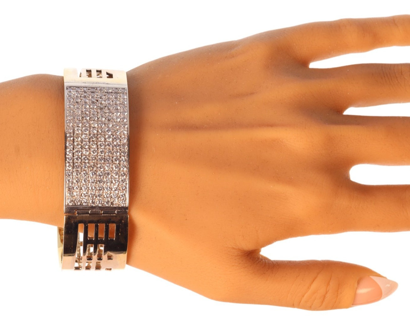 Questo bracciale realizzato in oro giallo e bianco 18 carati, presenta una melodia di diamanti luccicanti con un peso totale di 10,08 carati, rendendolo un pezzo affascinante per gli amanti della musica e i collezionisti.