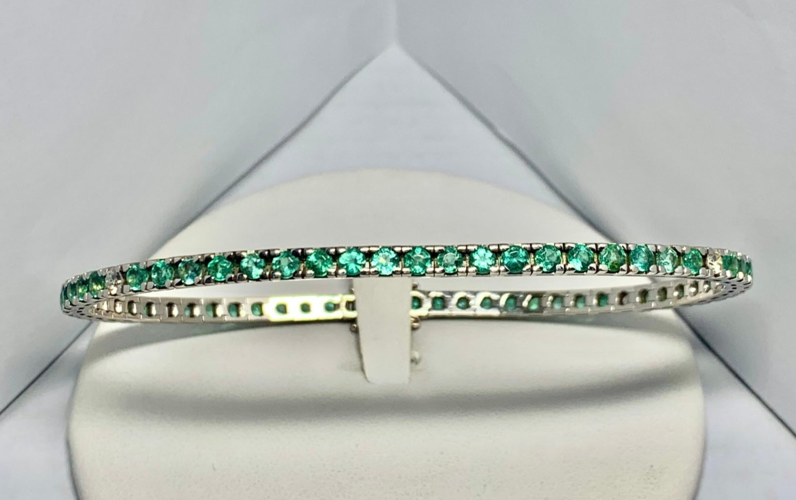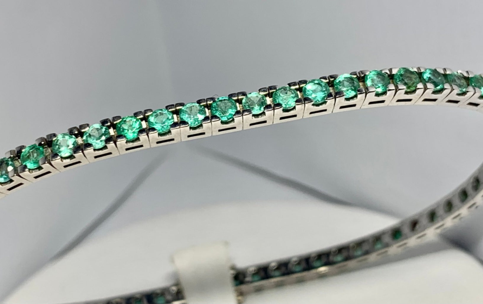 Bracciale tennis - 18 carati Oro bianco - 6.38ct. tw. Smeraldo - Diamante