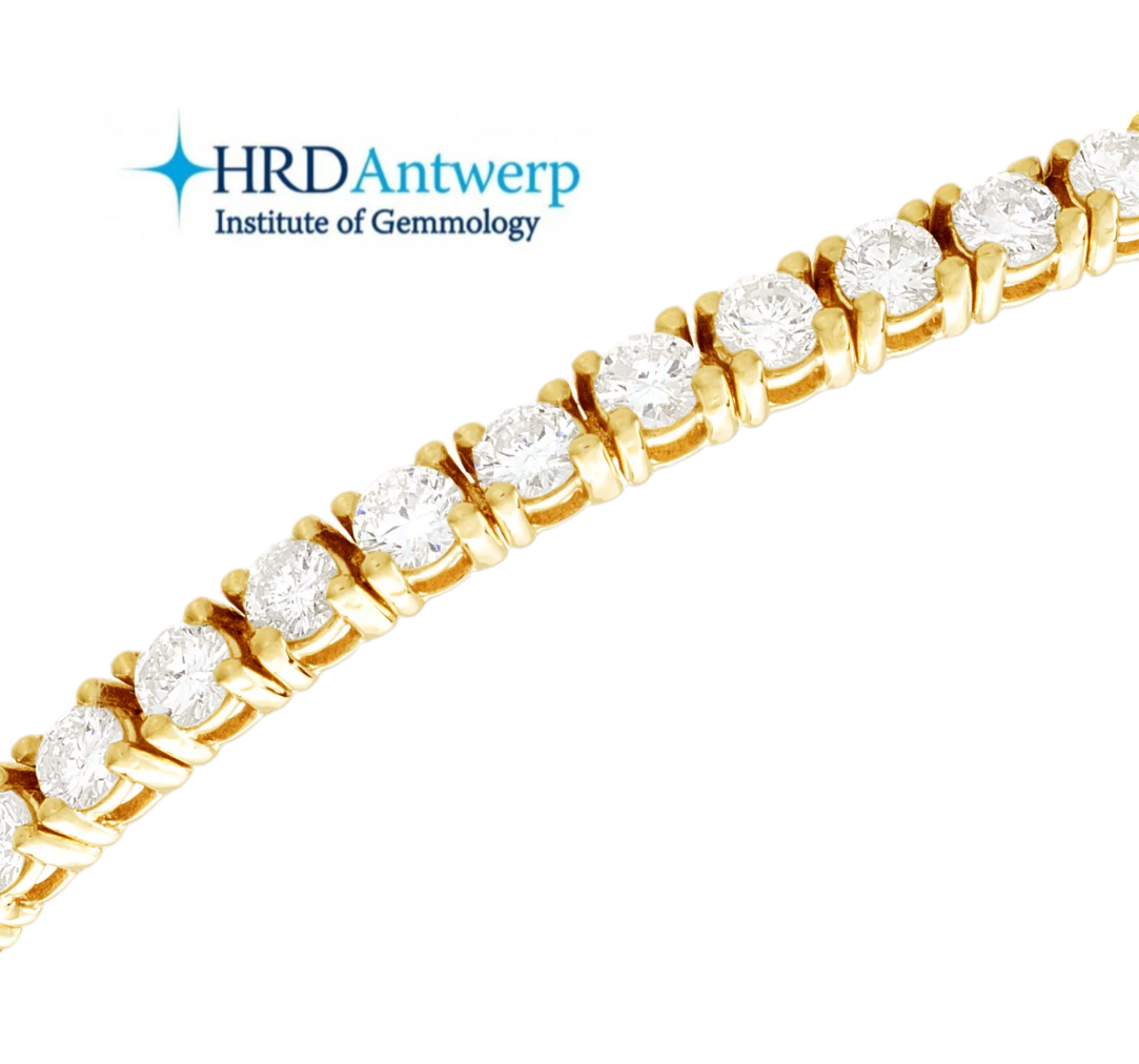 Bracciale tennis certificato HRD in oro giallo 18k e diamanti naturali 5,60 ct D VS1