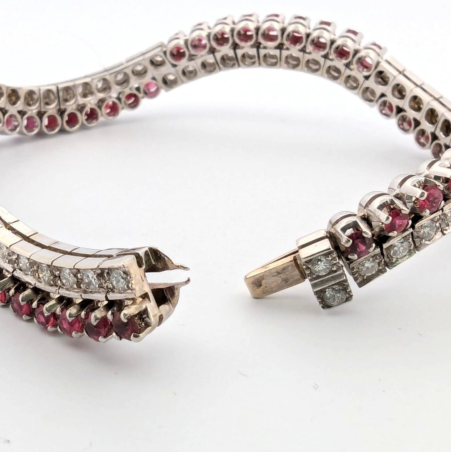 Bracciale tennis in oro bianco e rubino naturali e diamanti naturali 9.00ct