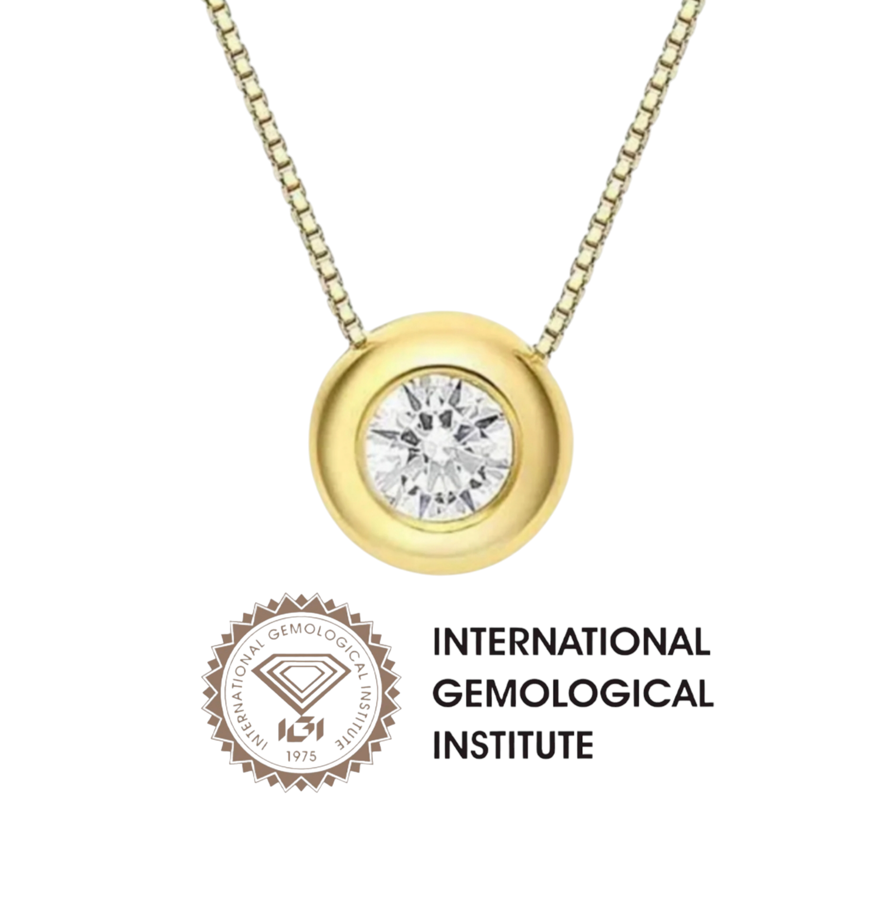Gioiello collana punto luce a cipollina piccola interamente realizzata in Italia, corredata da scatola e certificato di autenticità riportante documentazione fotografica del gioiello e le caratteristiche dell'oro e del diamante