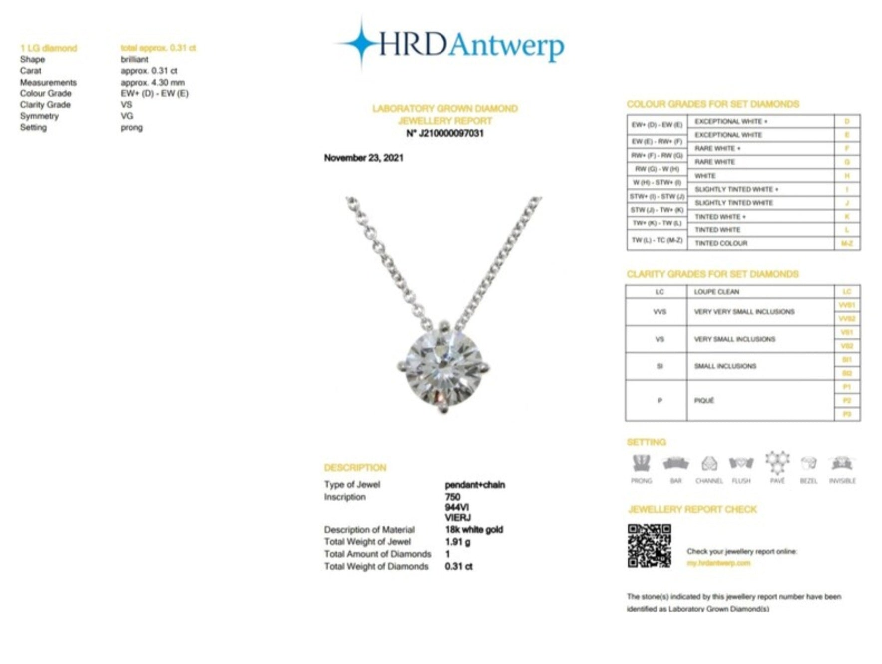 ciondolo punto luce certificato HRD in oro bianco diamante naturale 0,31 ct