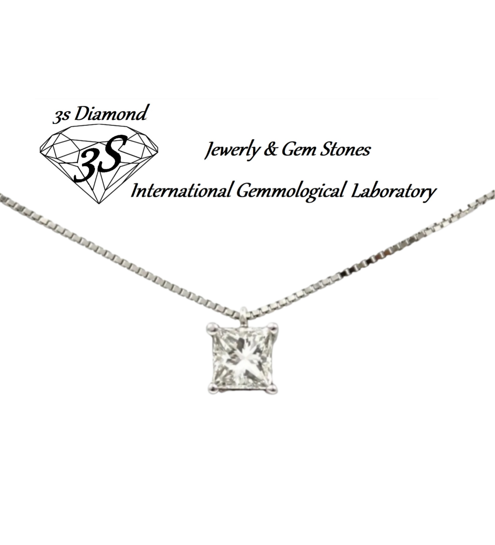ciondolo punto luce in oro bianco e diamante naturale Taglio princess 0,25ct