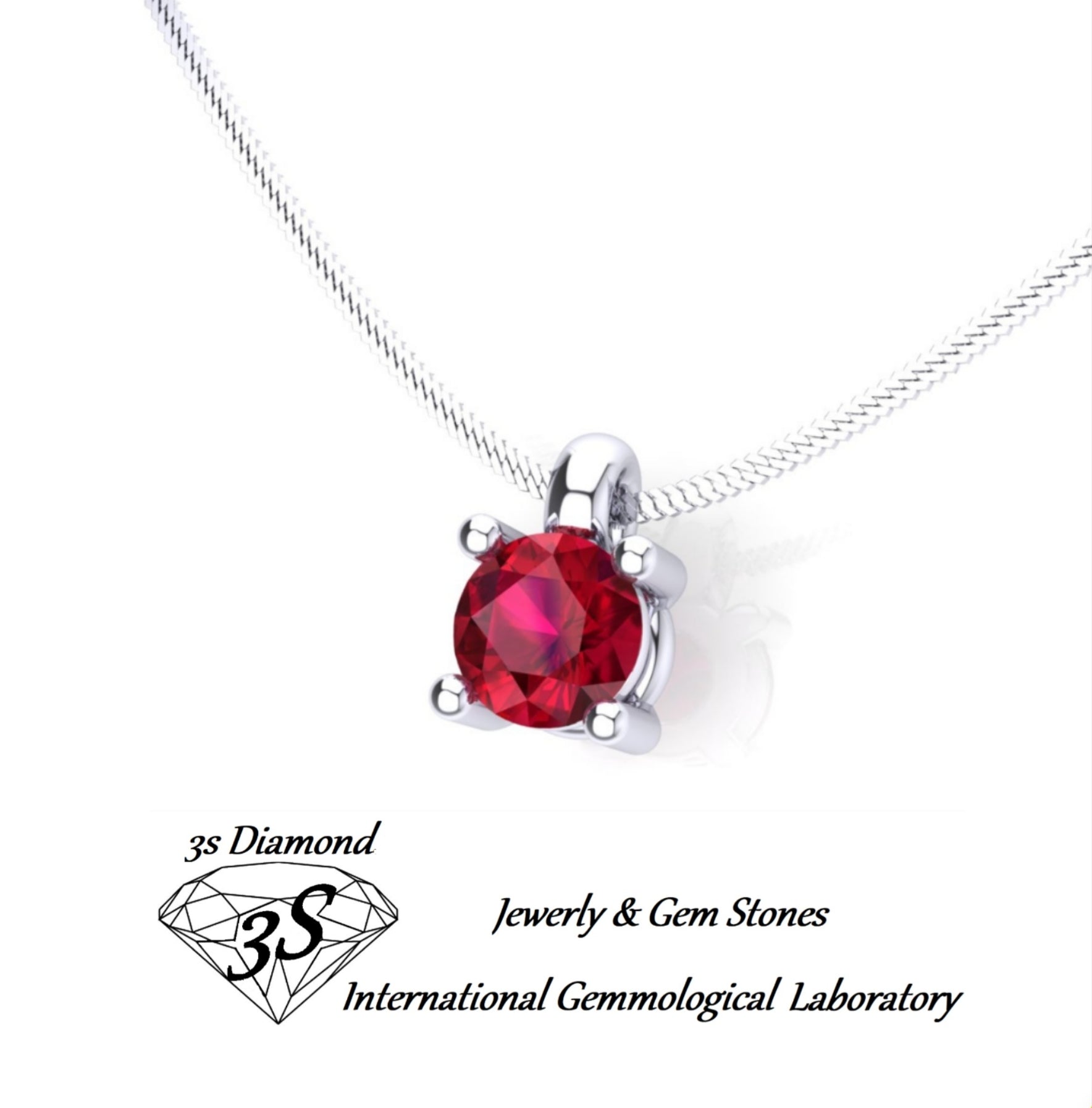 ciondolo punto luce in oro bianco 18k e rubino naturale 0,50 ct