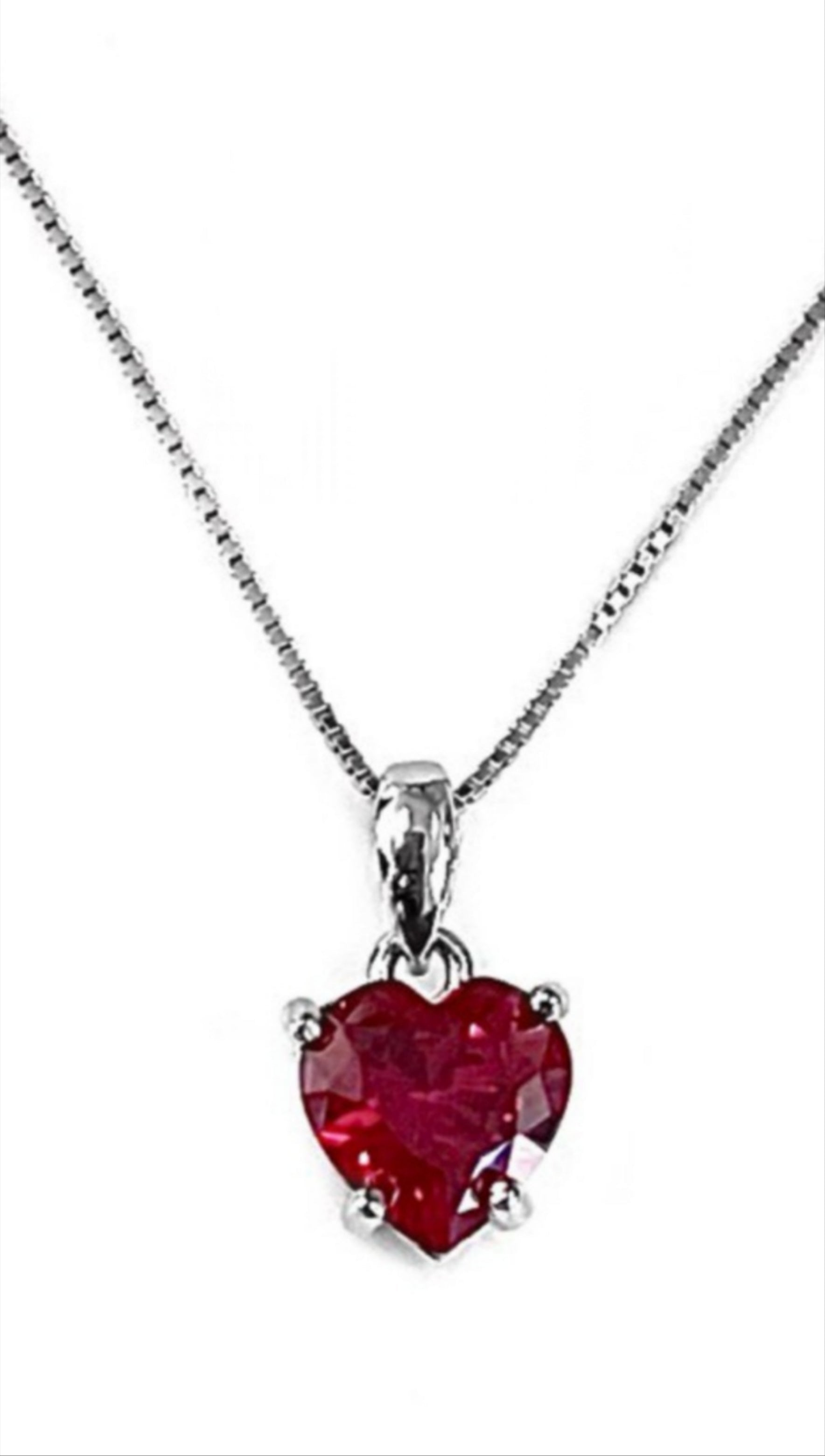 ciondolo punto luce in oro bianco 18k e rubino naturale taglio cuore 0,90ct