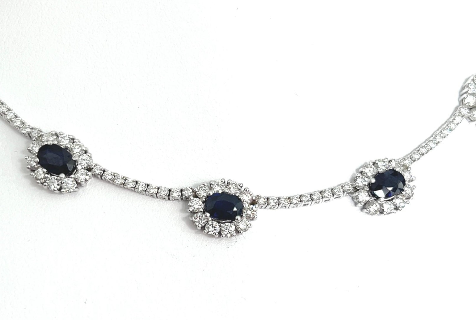 Collana collier tennis in oro bianco 18k e zaffiro e diamanti naturali 8ct