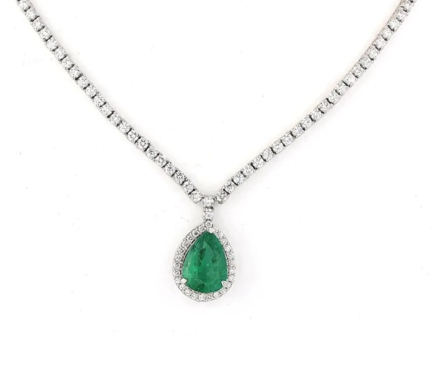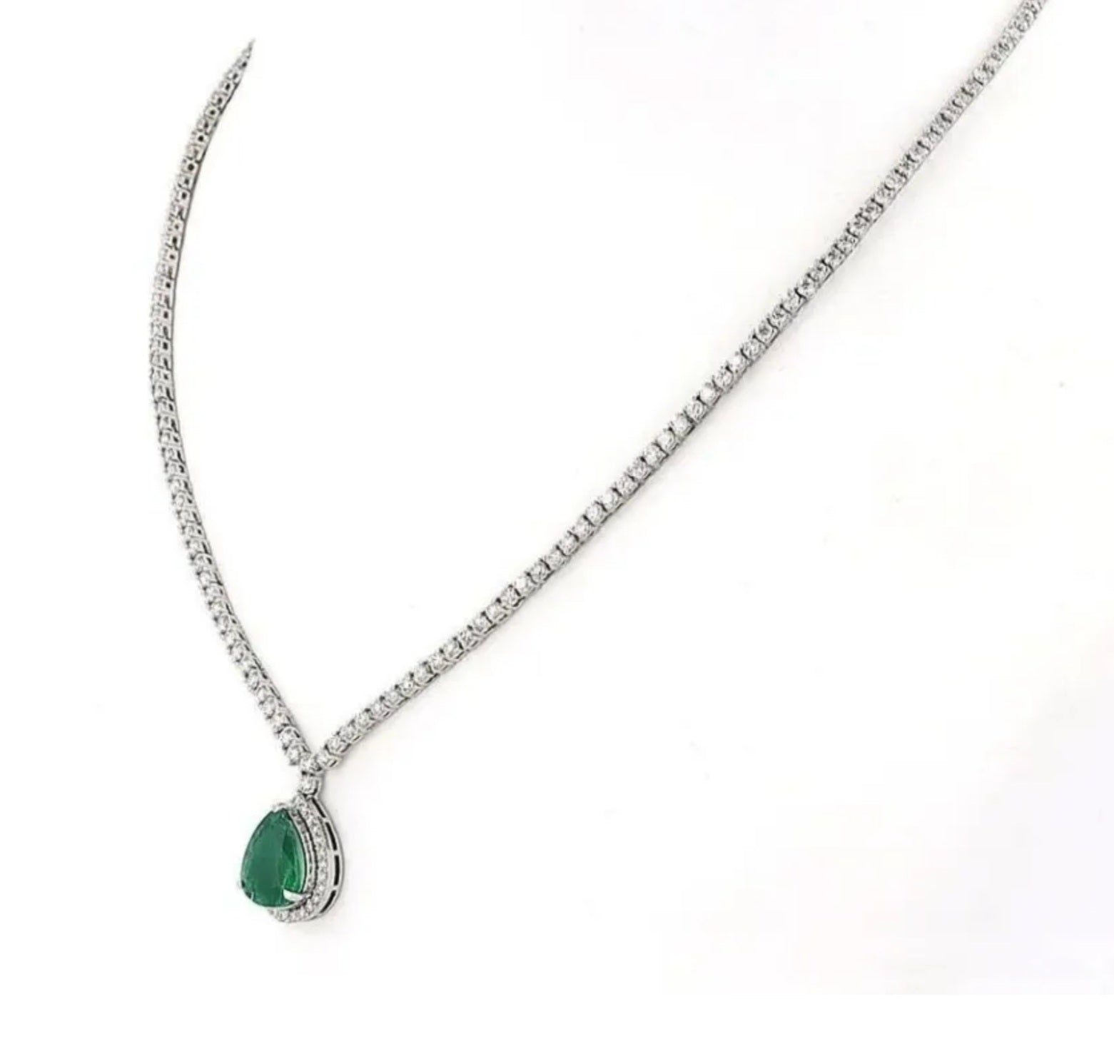 Collana collier tennis in oro e smeraldo e diamanti naturali 8.44 ct
