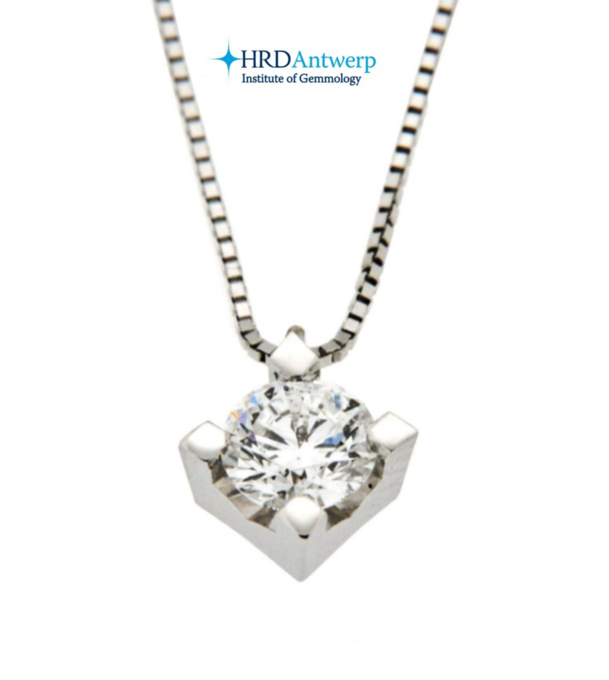 Collana punto luce certificato HRD in oro bianco con diamante naturale 0,20 ct F VVS1