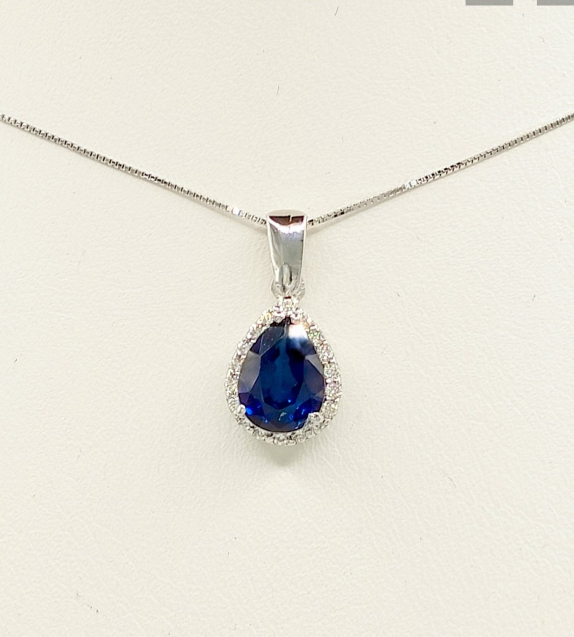 Collana in oro bianco 18k e diamanti naturali e zaffiro naturale 1.98 ct
