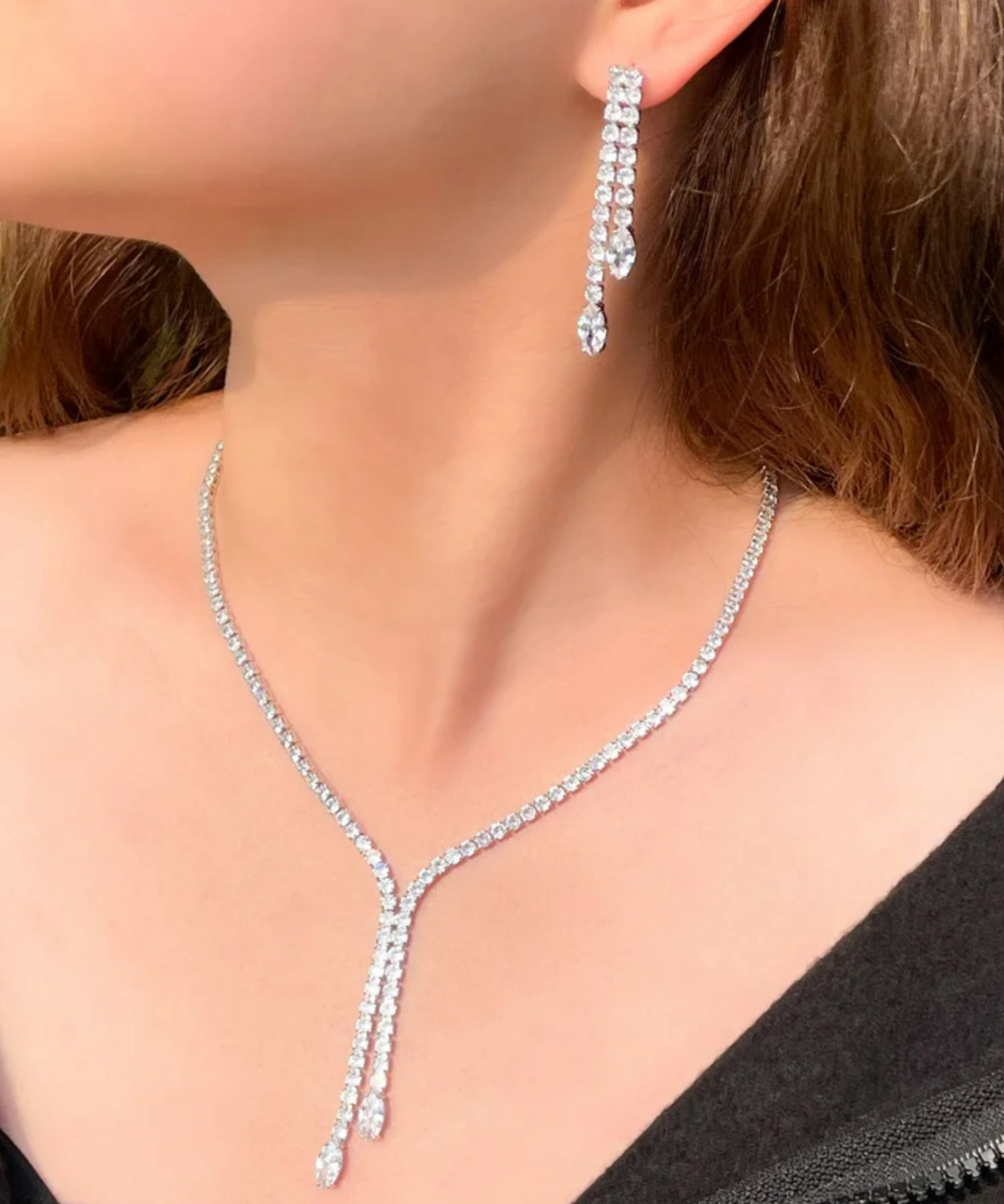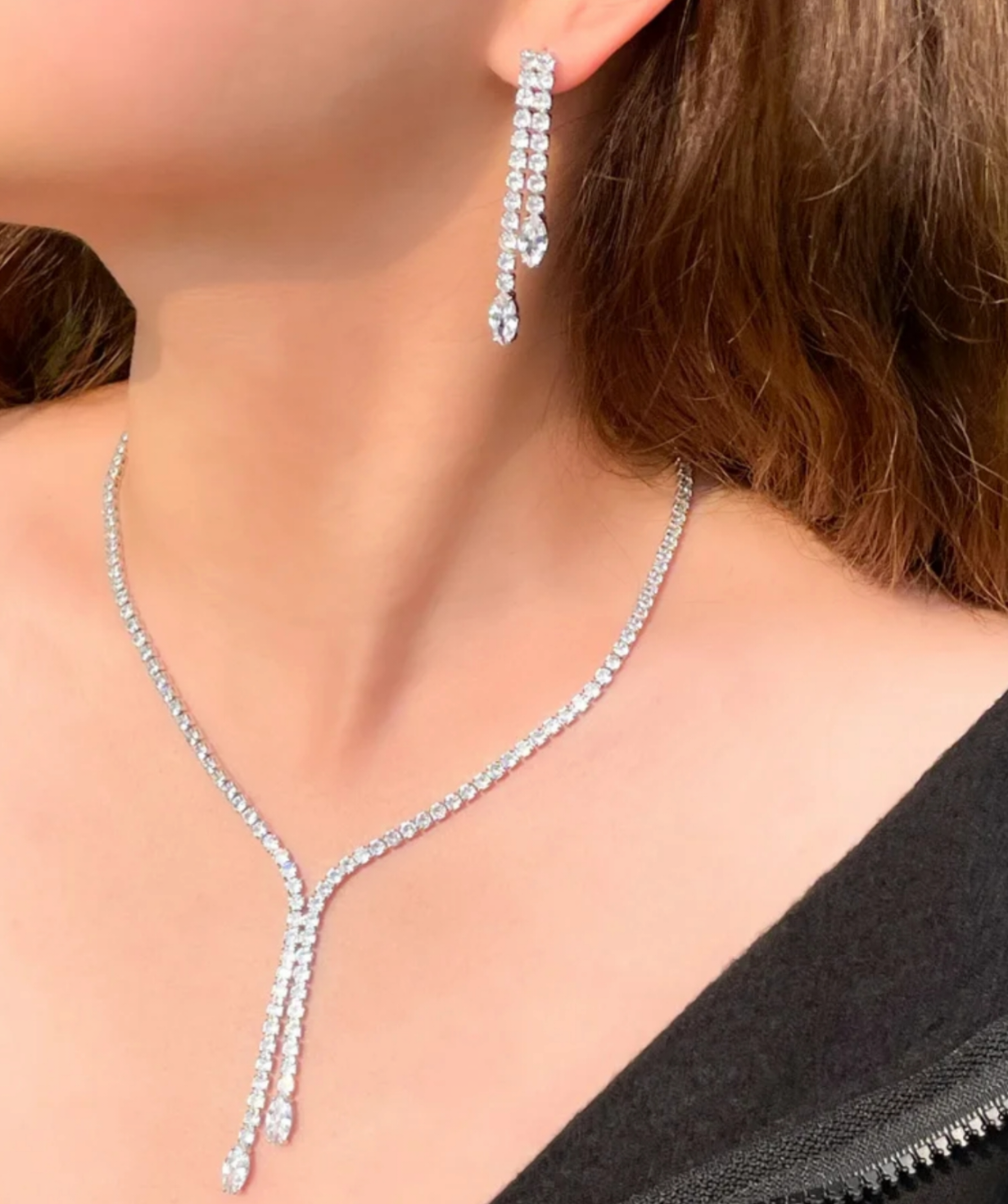 Set completo collana tennis e orecchini in oro e diamanti naturali 33 ct