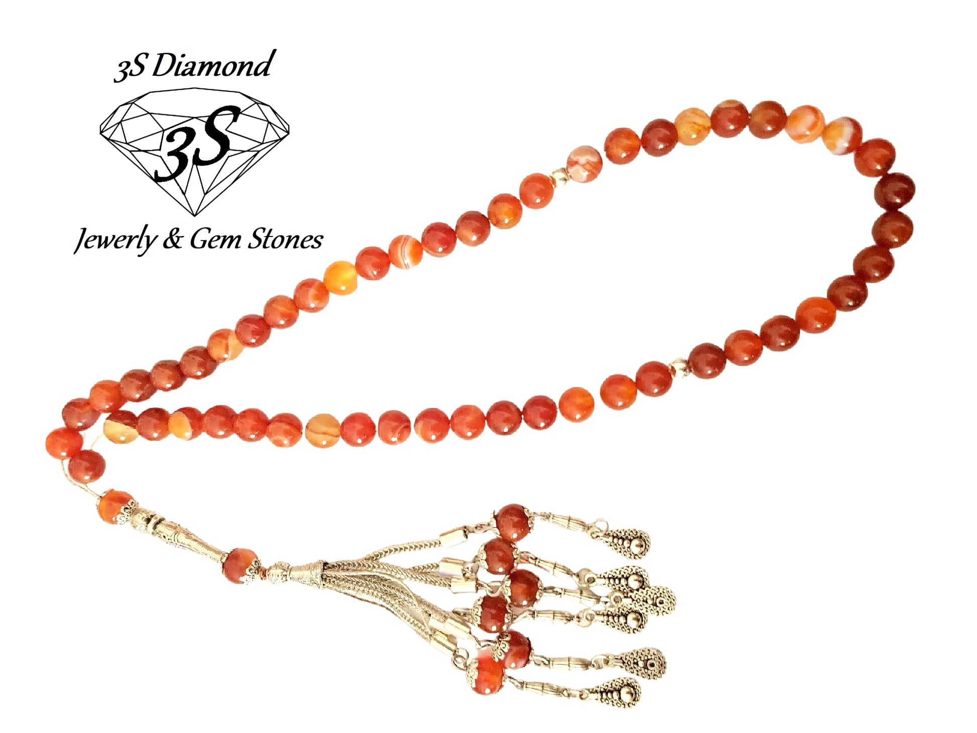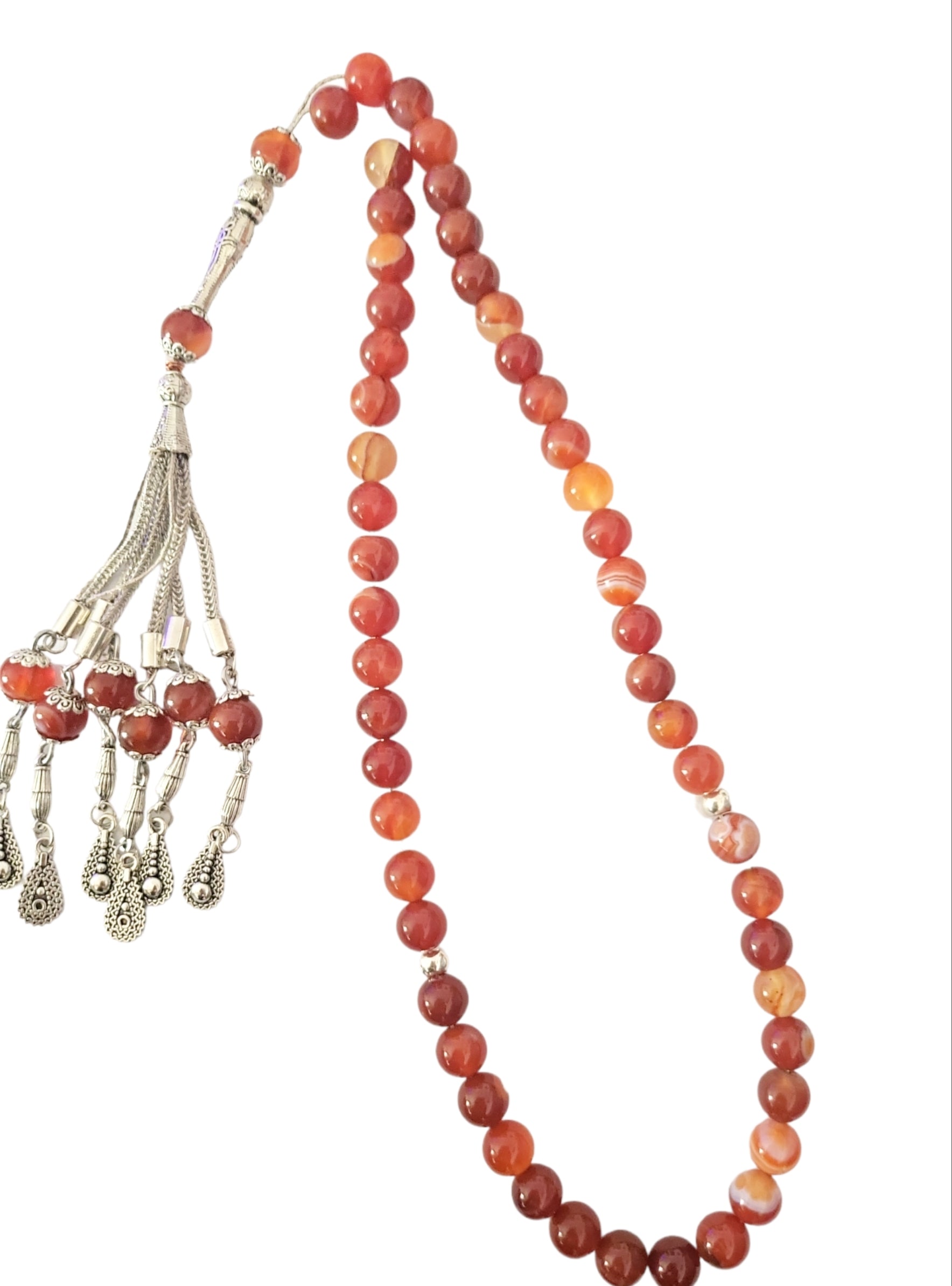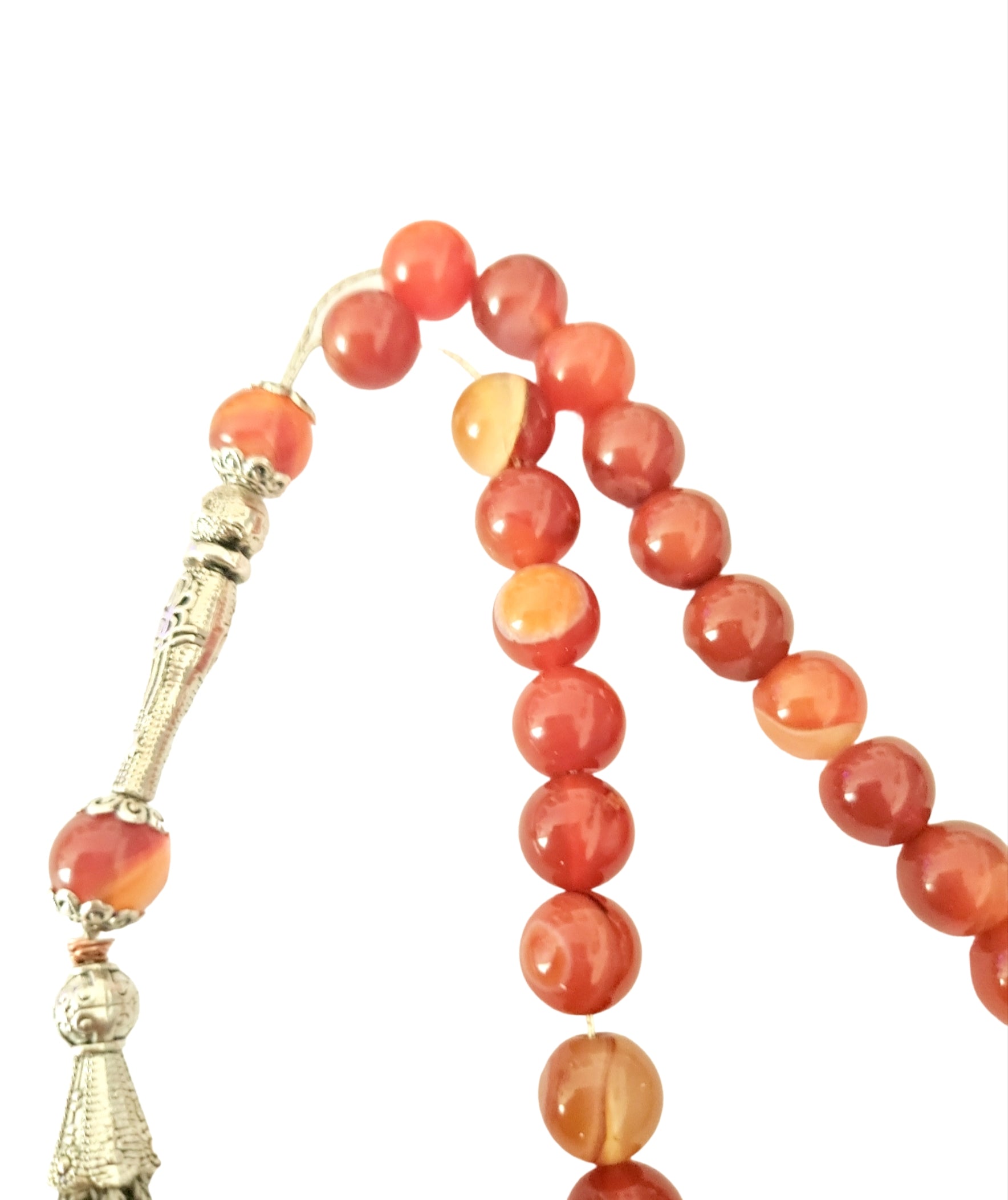 tasbih perline rotondo agata naturale color fuoco arancione in argento