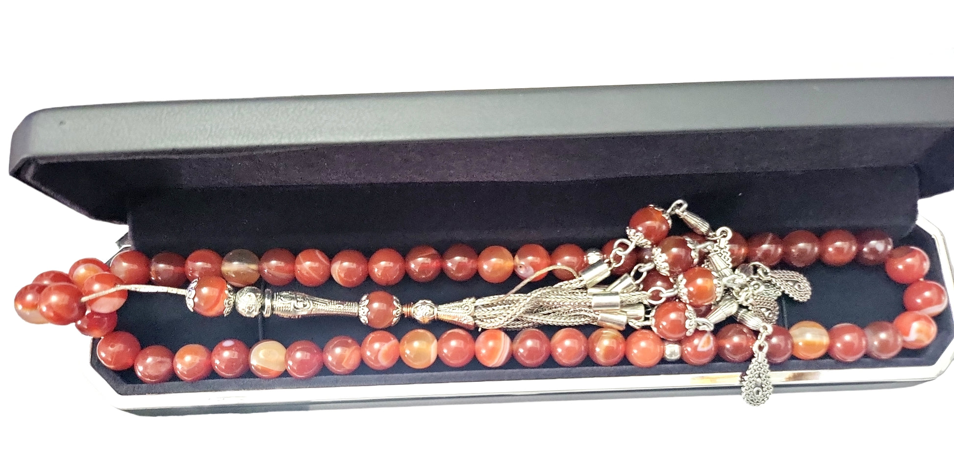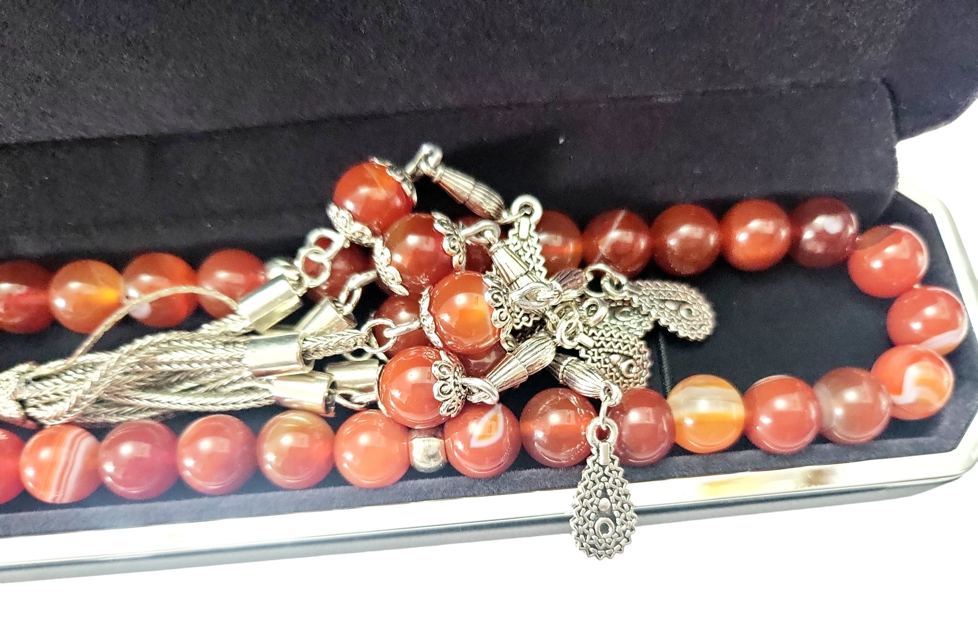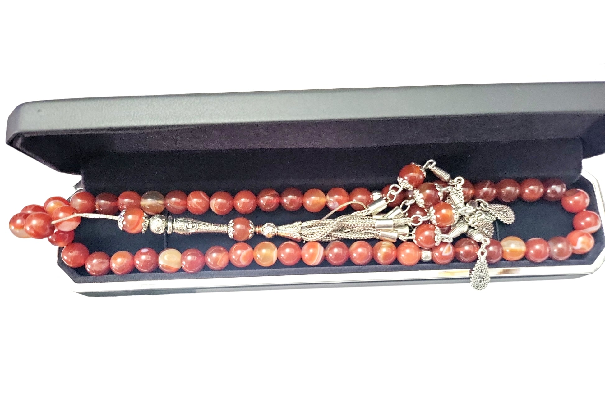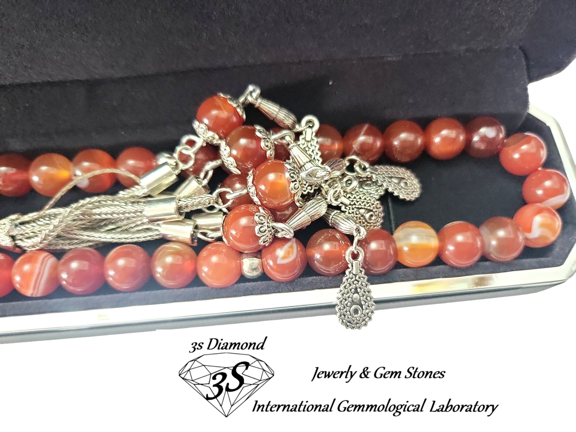 tasbih perline rotondo agata naturale color fuoco arancione in argento
