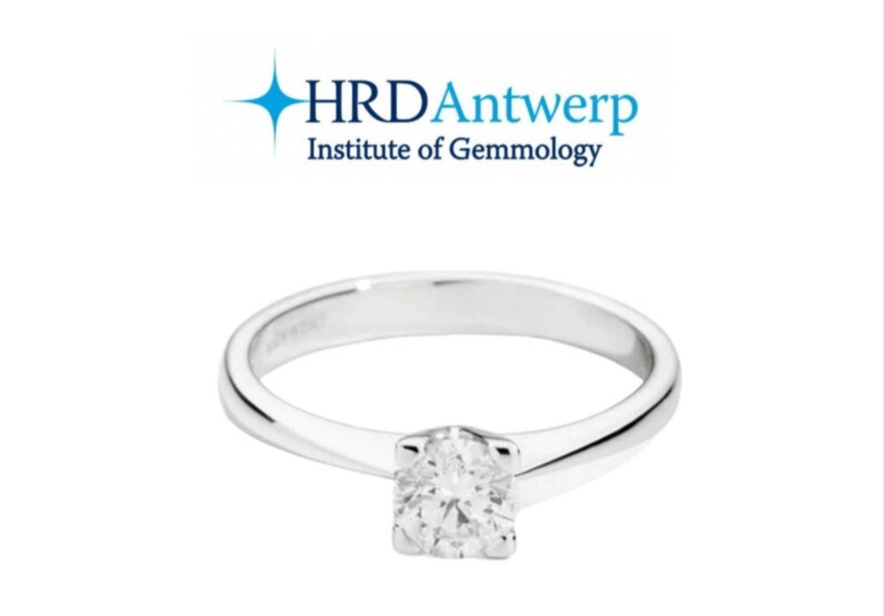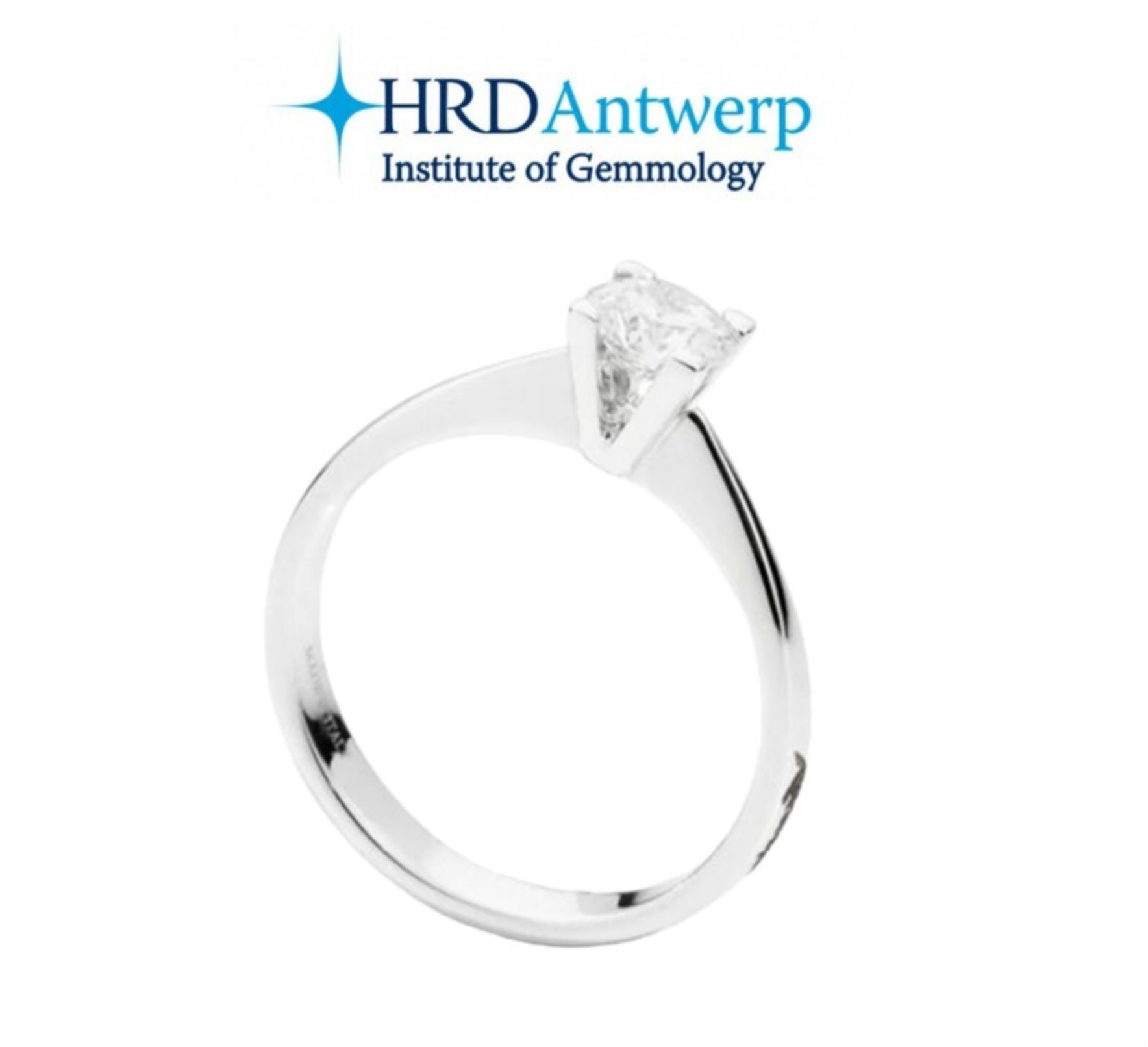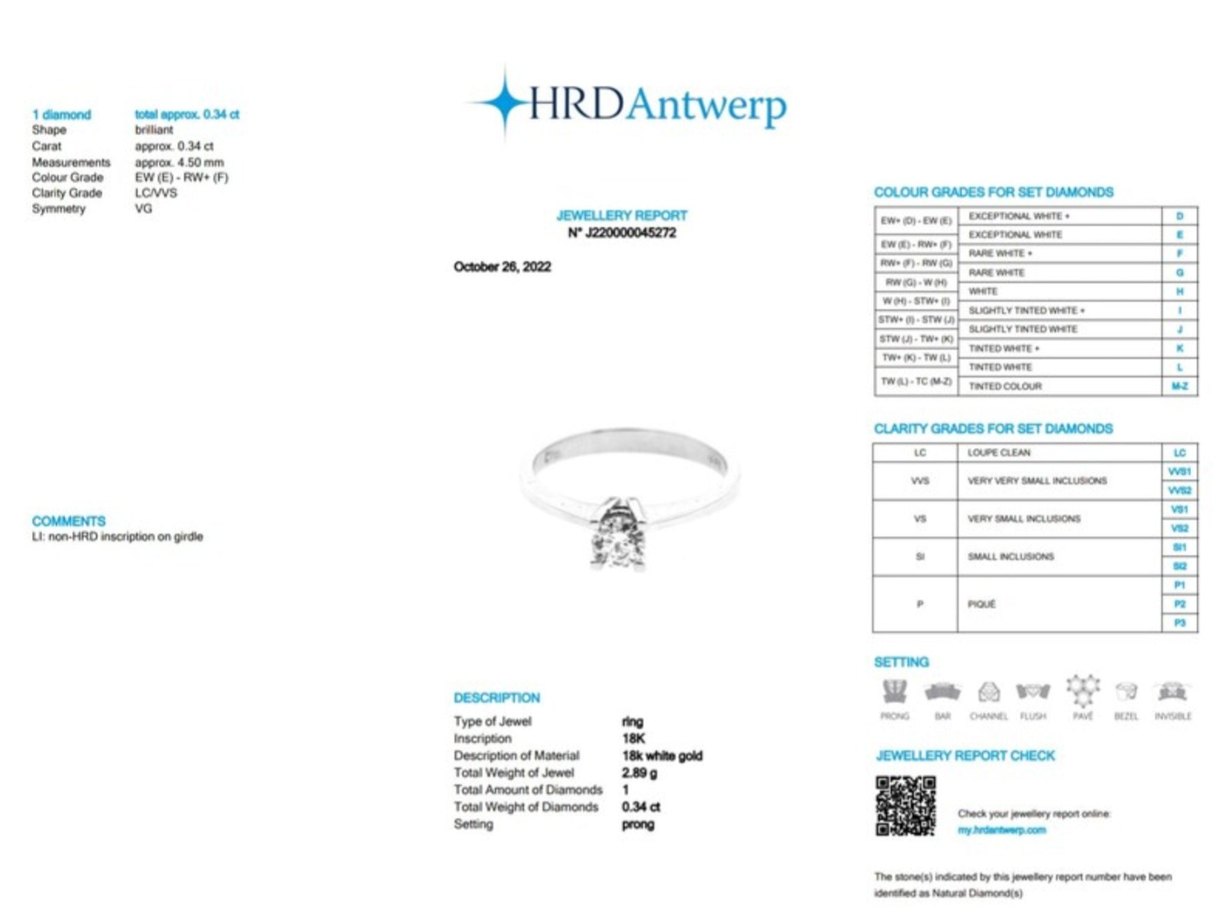 anello solitario certificato HRD in oro bianco 18k e diamante naturali centrale 0,34ct