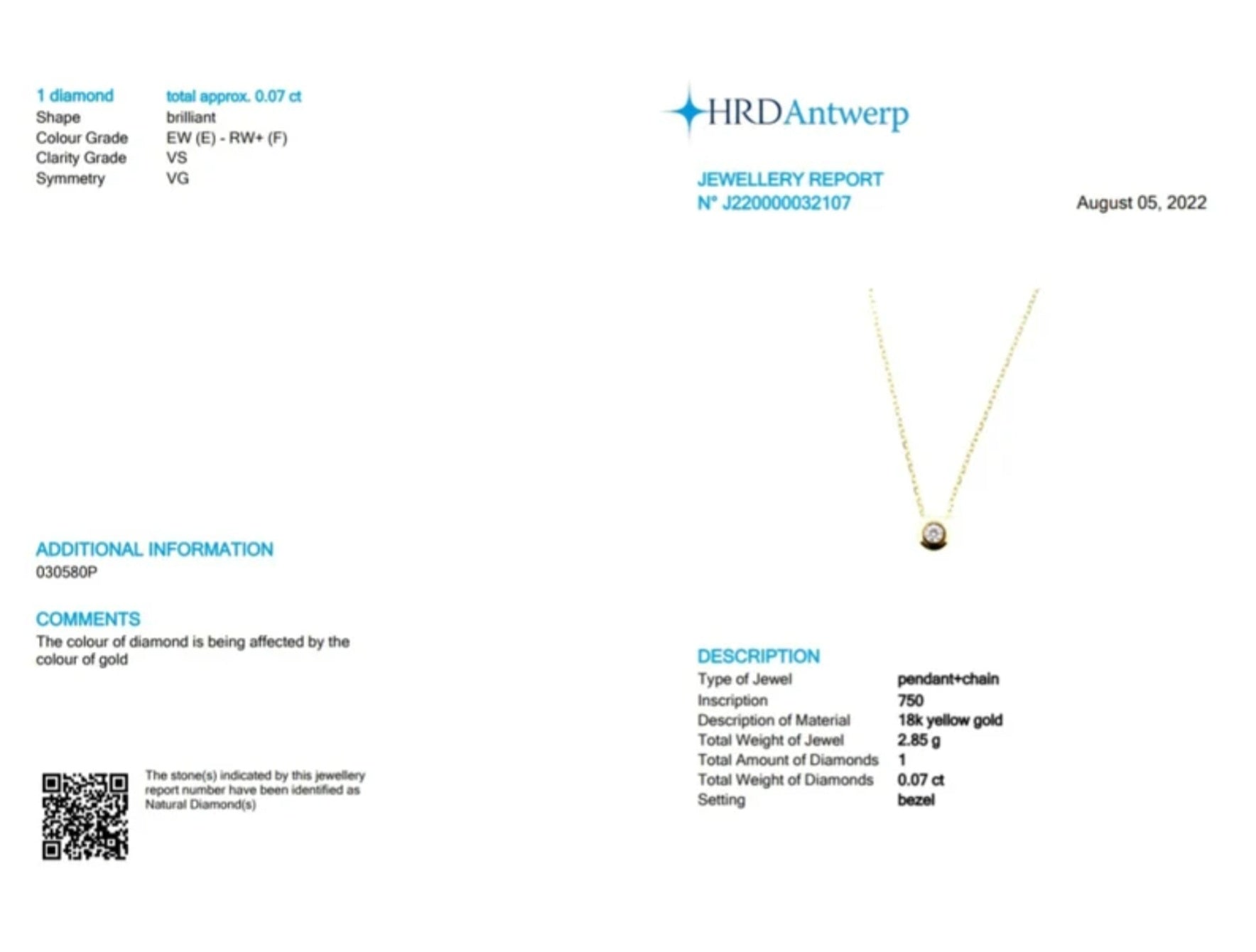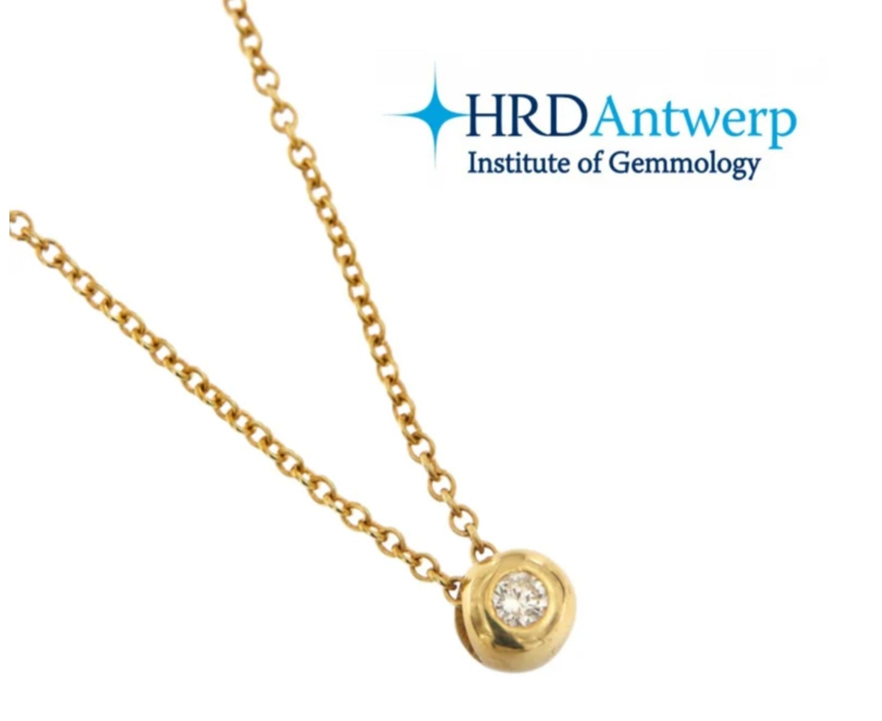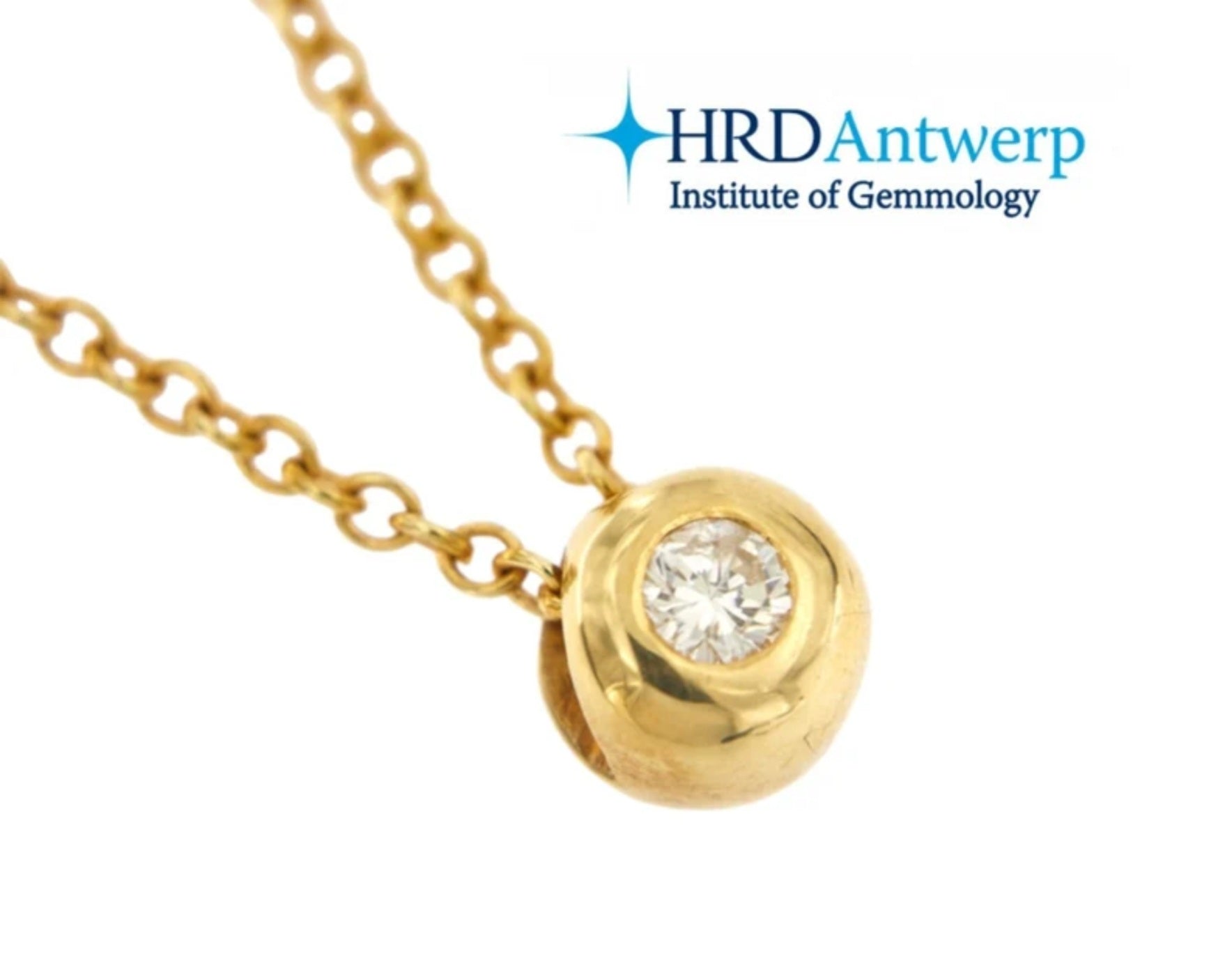 ciondolo punto luce certificato HRD a cipollina in oro bianco e diamanti naturale 0,07 ct