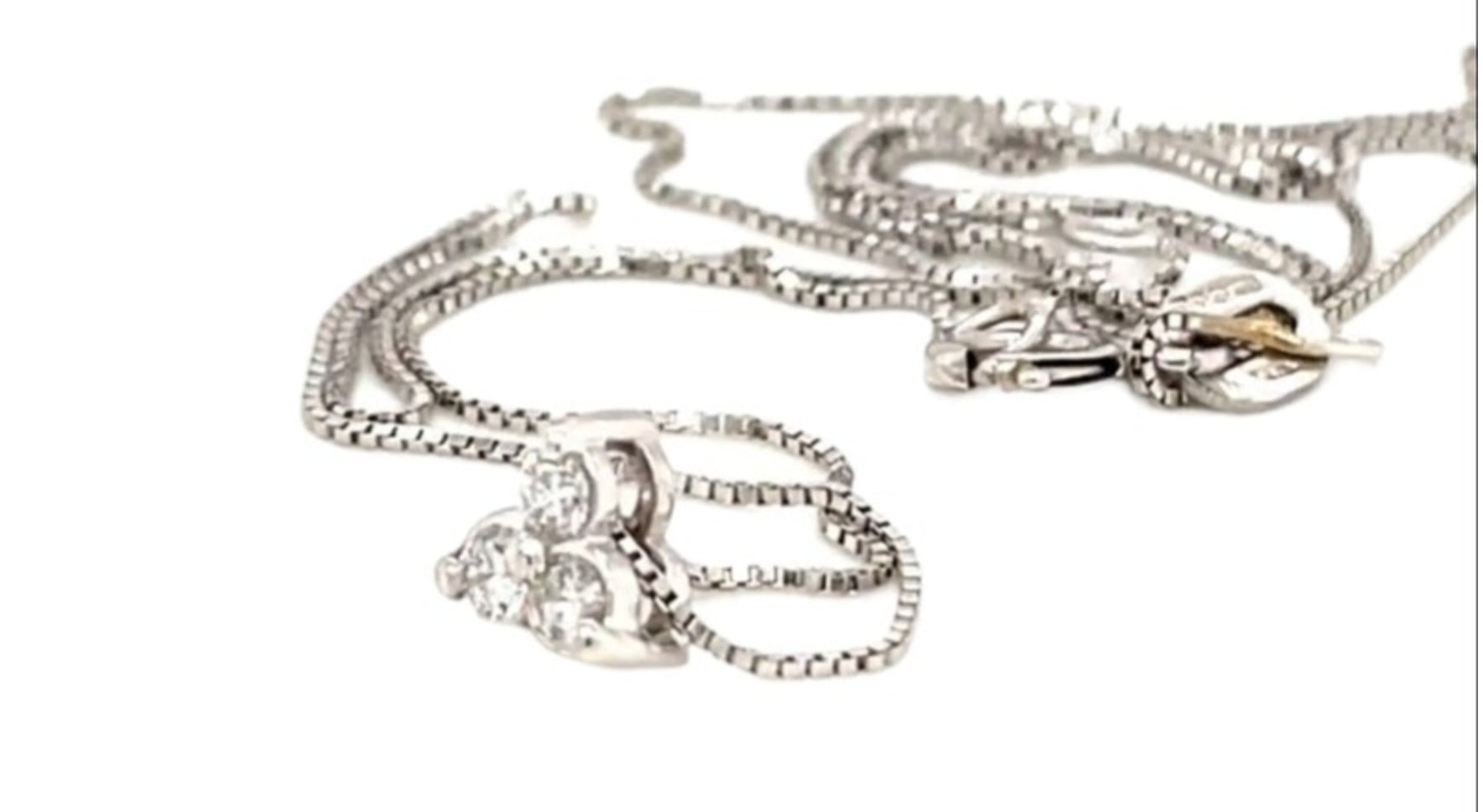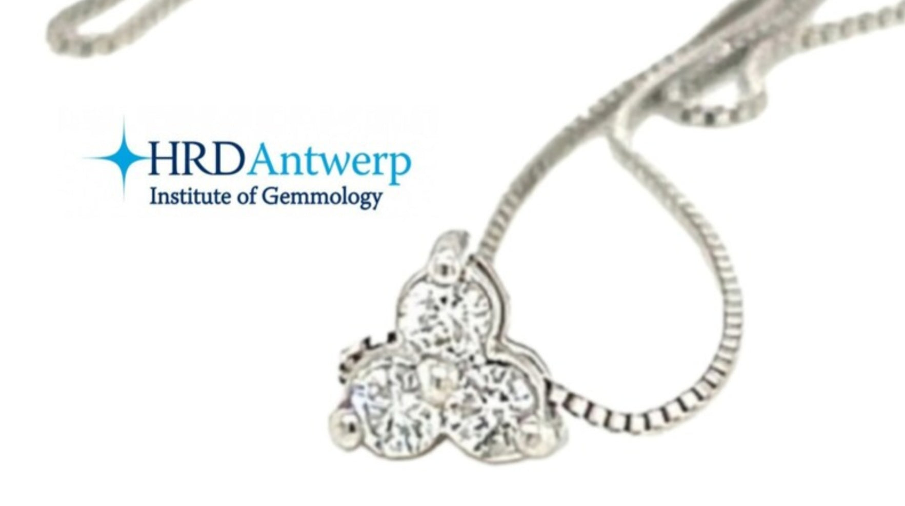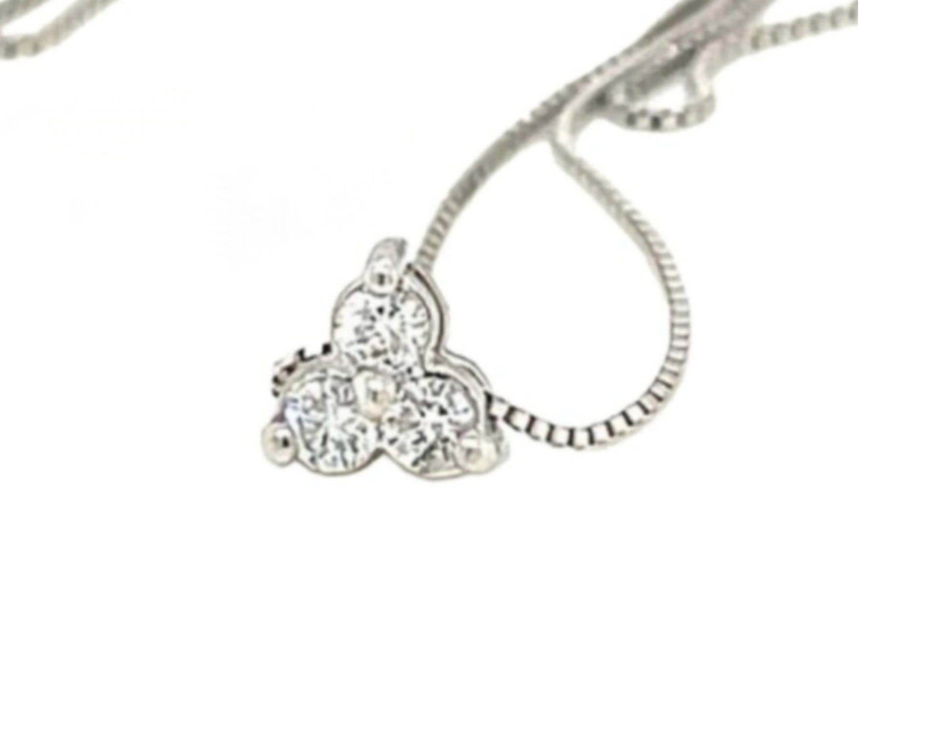 ciondolo trilogy certificato HRD in oro bianco e 3 diamanti naturali 0,43ct