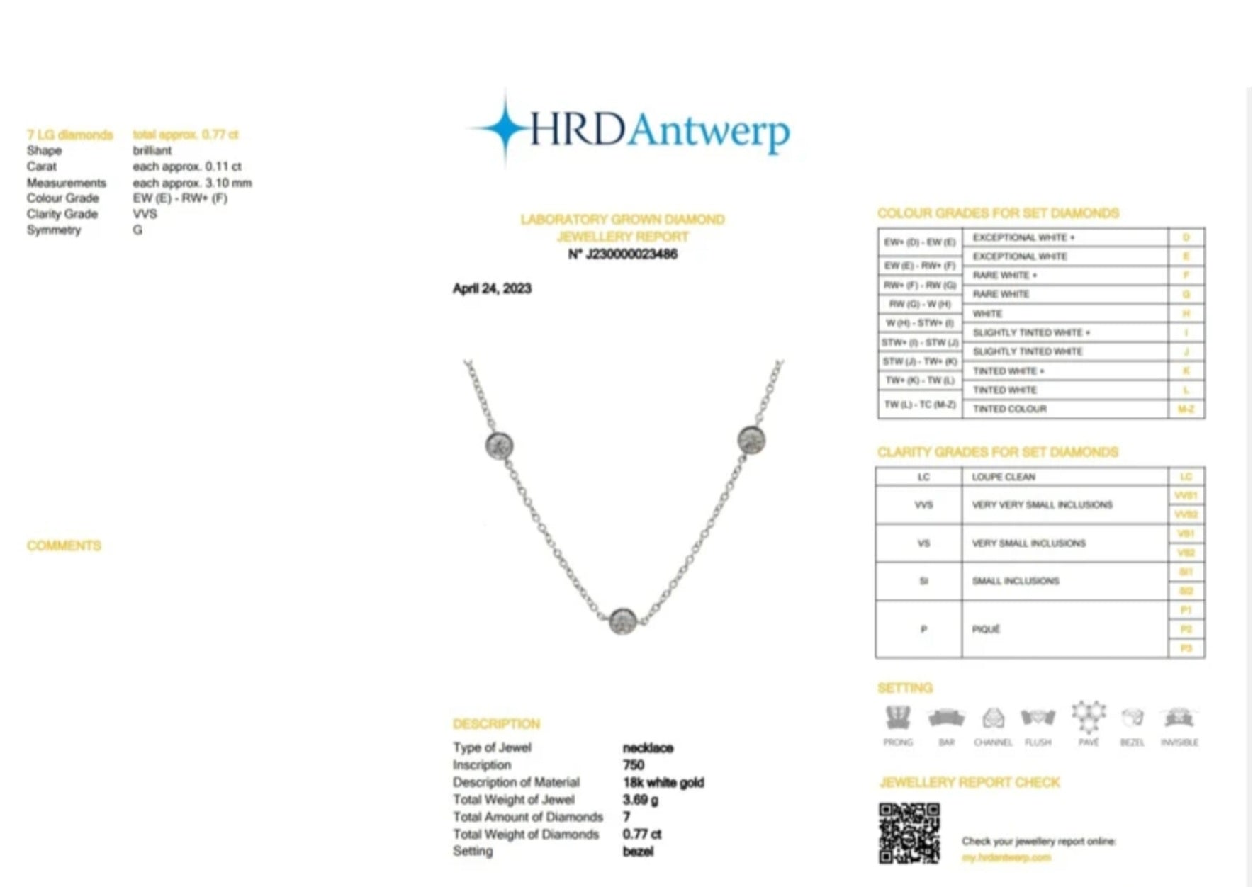 collana certificato HRD IN oro bianco con 7 diamanti naturali 0,77 ct