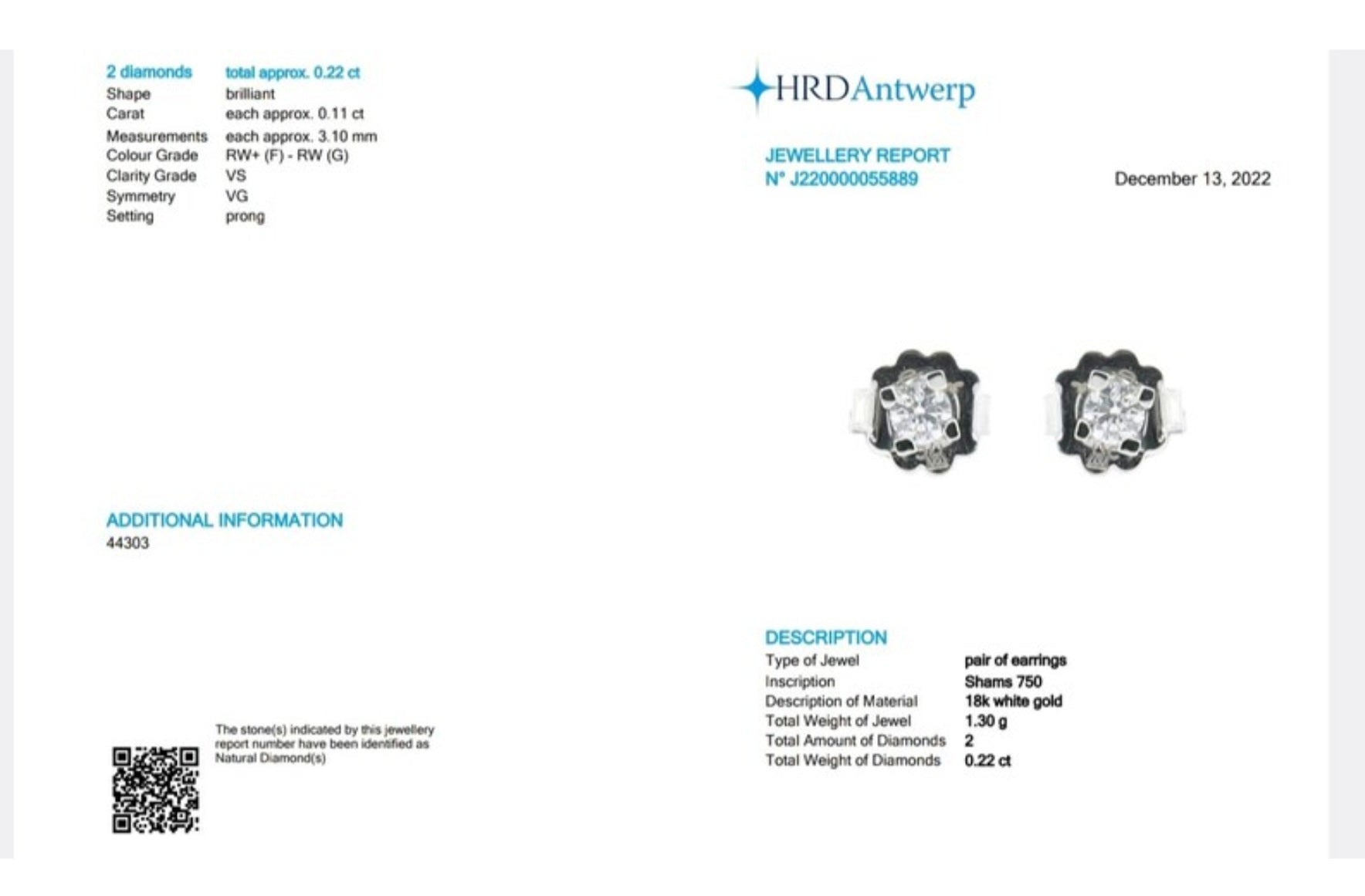 orecchini punto luce quadrato certificato HRD in oro bianco 18k e 2 diamanti naturali 0,22ct