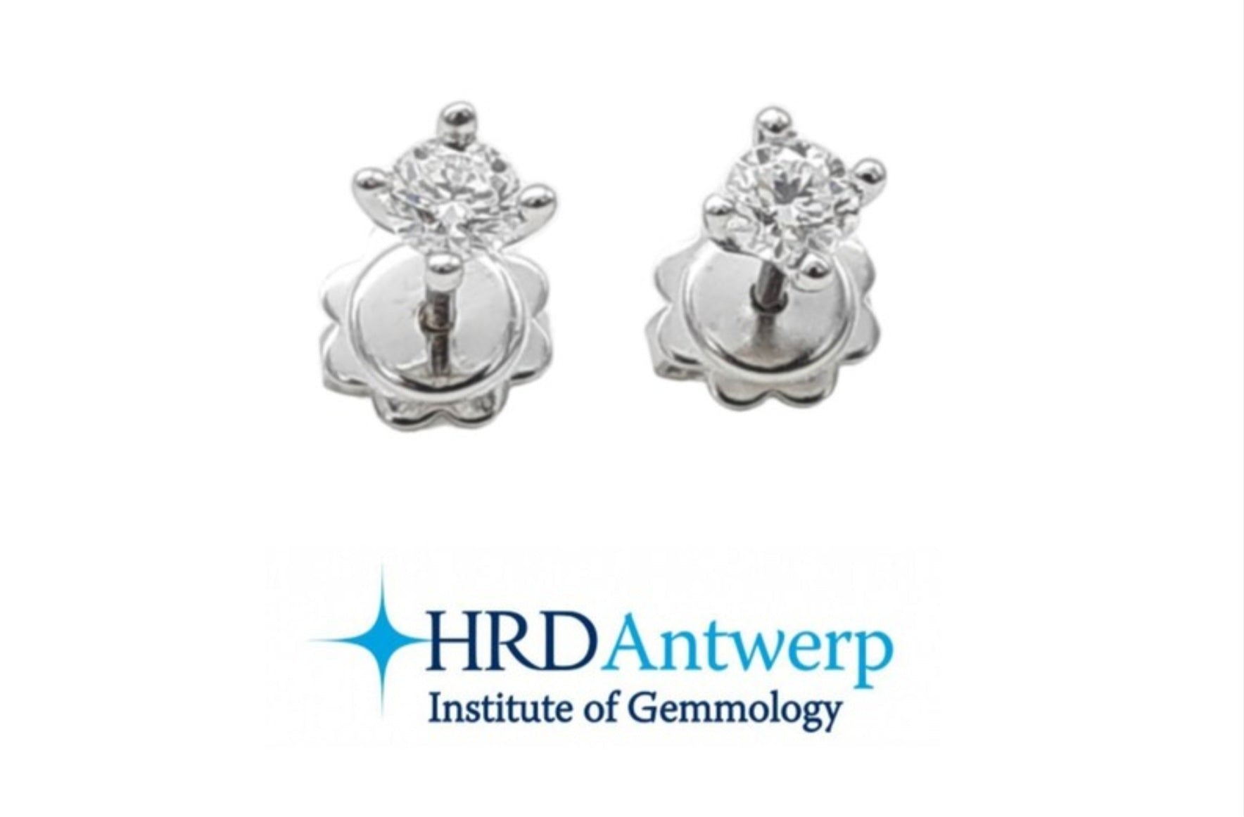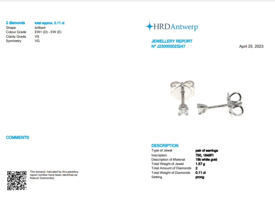 orecchini punto luce certificato HRD in oro bianco 18k e 2 diamanti naturali 0,11 ct