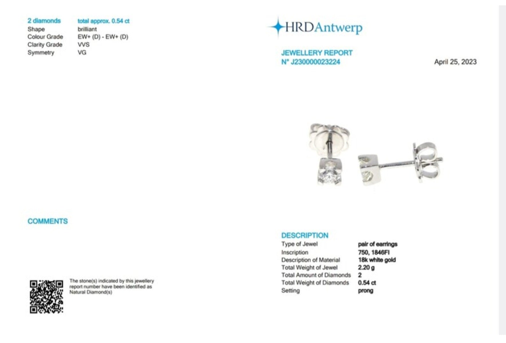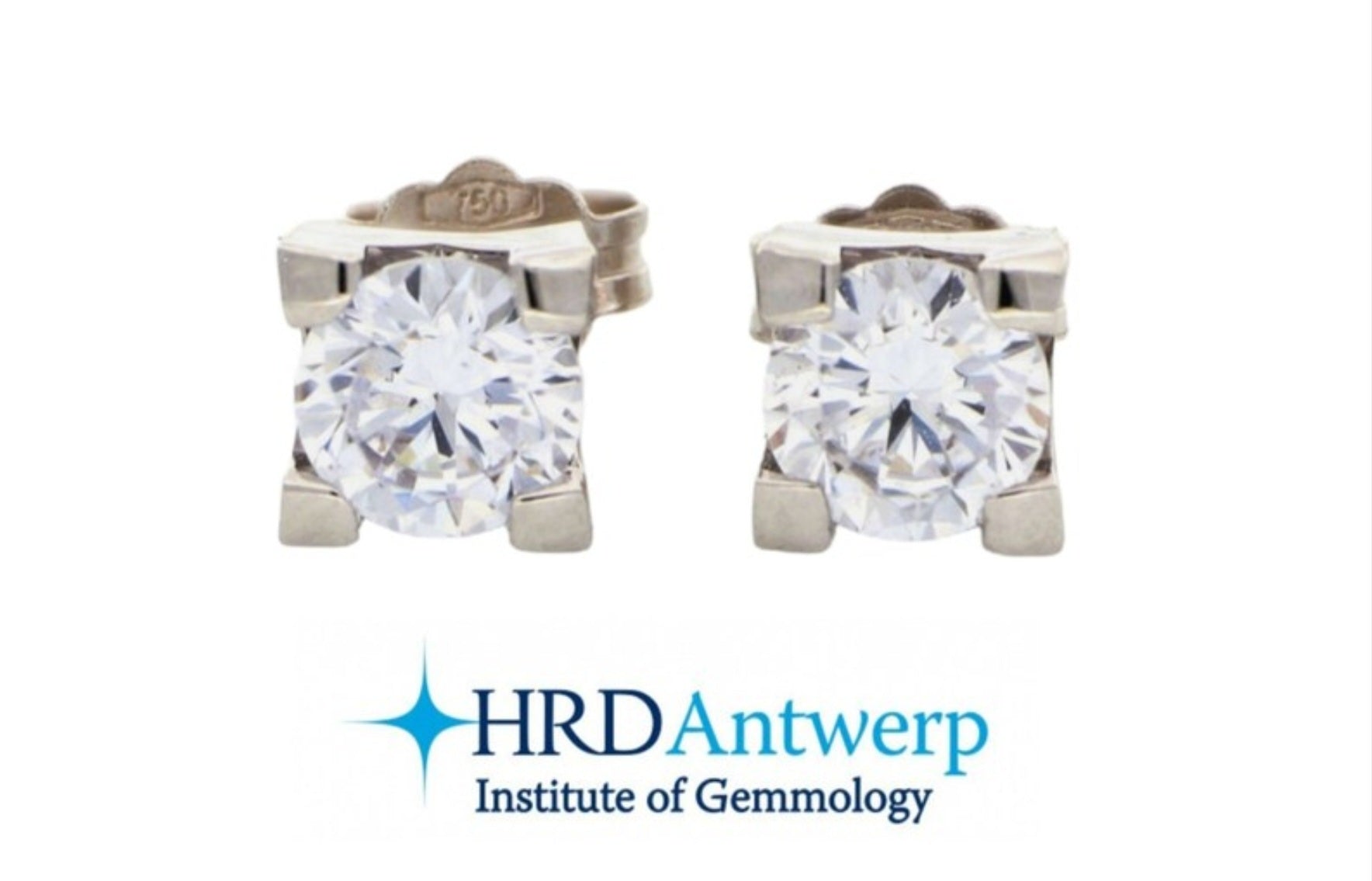 orecchini punto luce quadrato certificato HRD in oro bianco e 2 diamanti naturali 0,54 ct