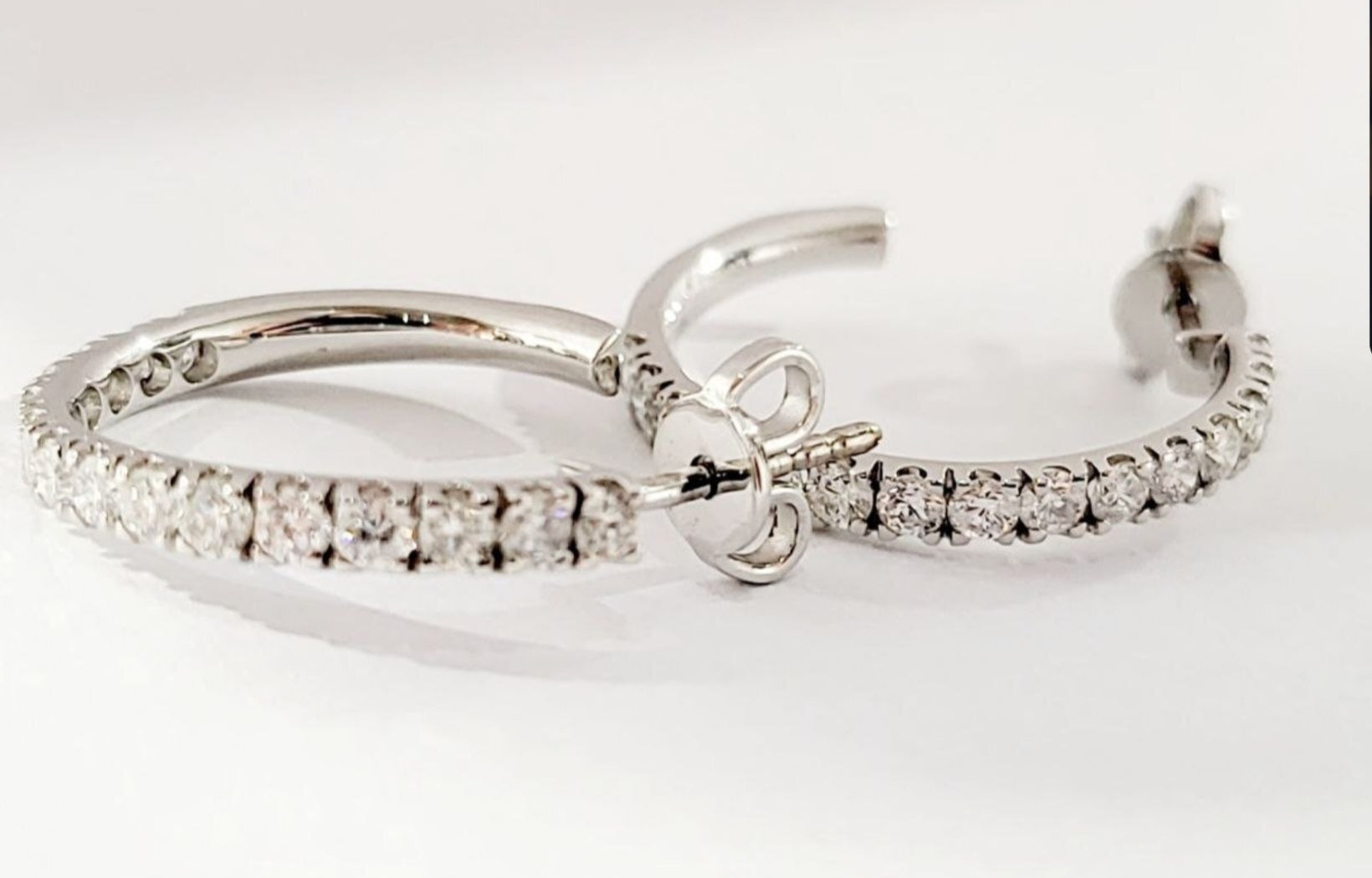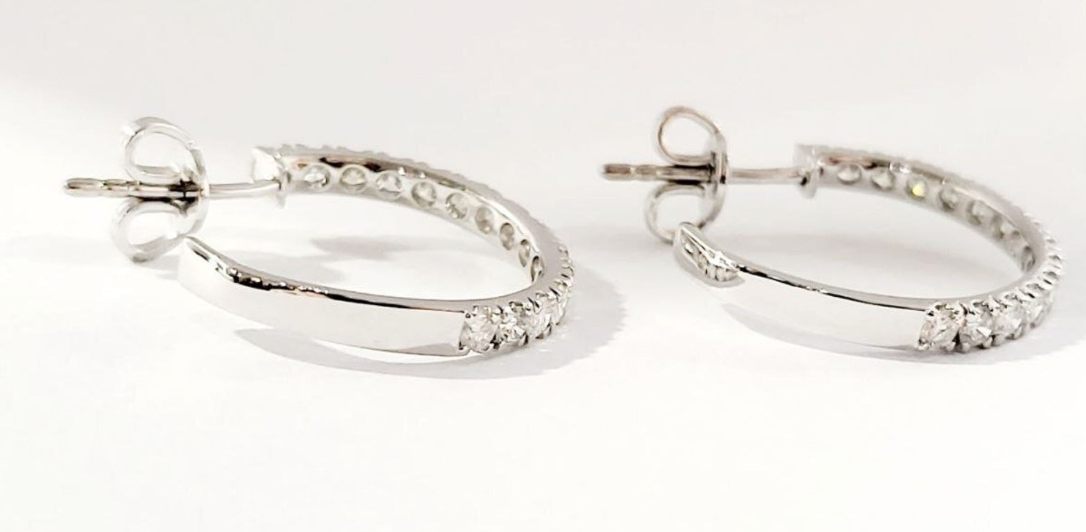 Orecchini modello semicerchio con diamanti bianchi naturali taglio brillante 1.10 ct lavorati in oro bianco 18 kt (750%)