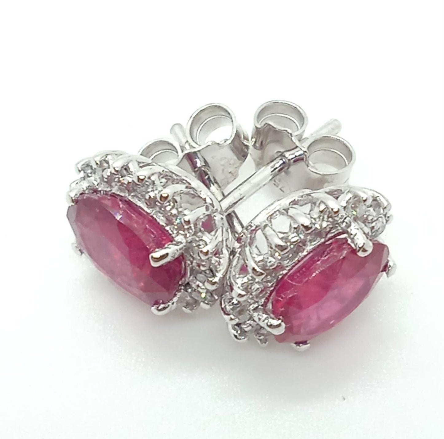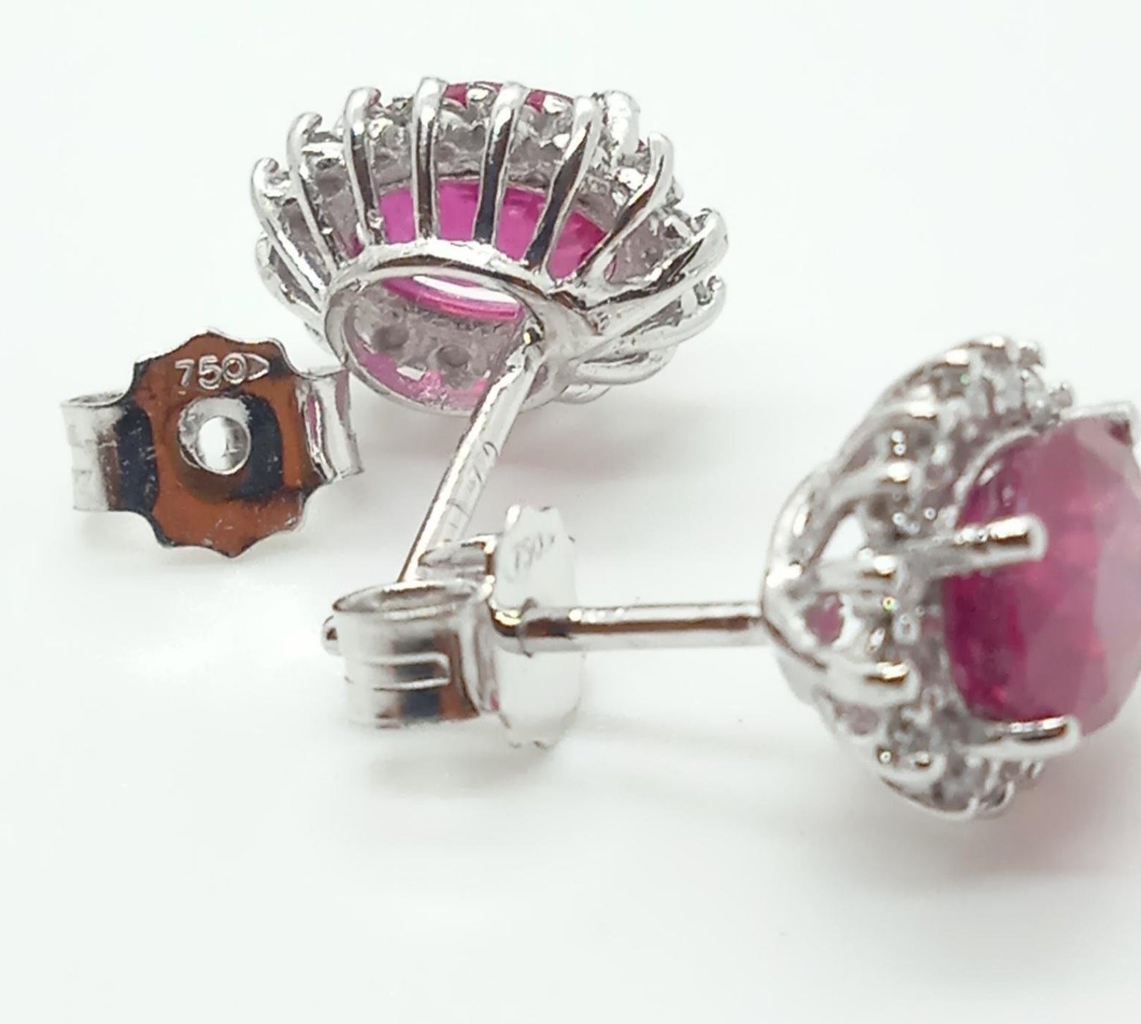 Orecchini - 18 carati Oro bianco Rubino - Diamante