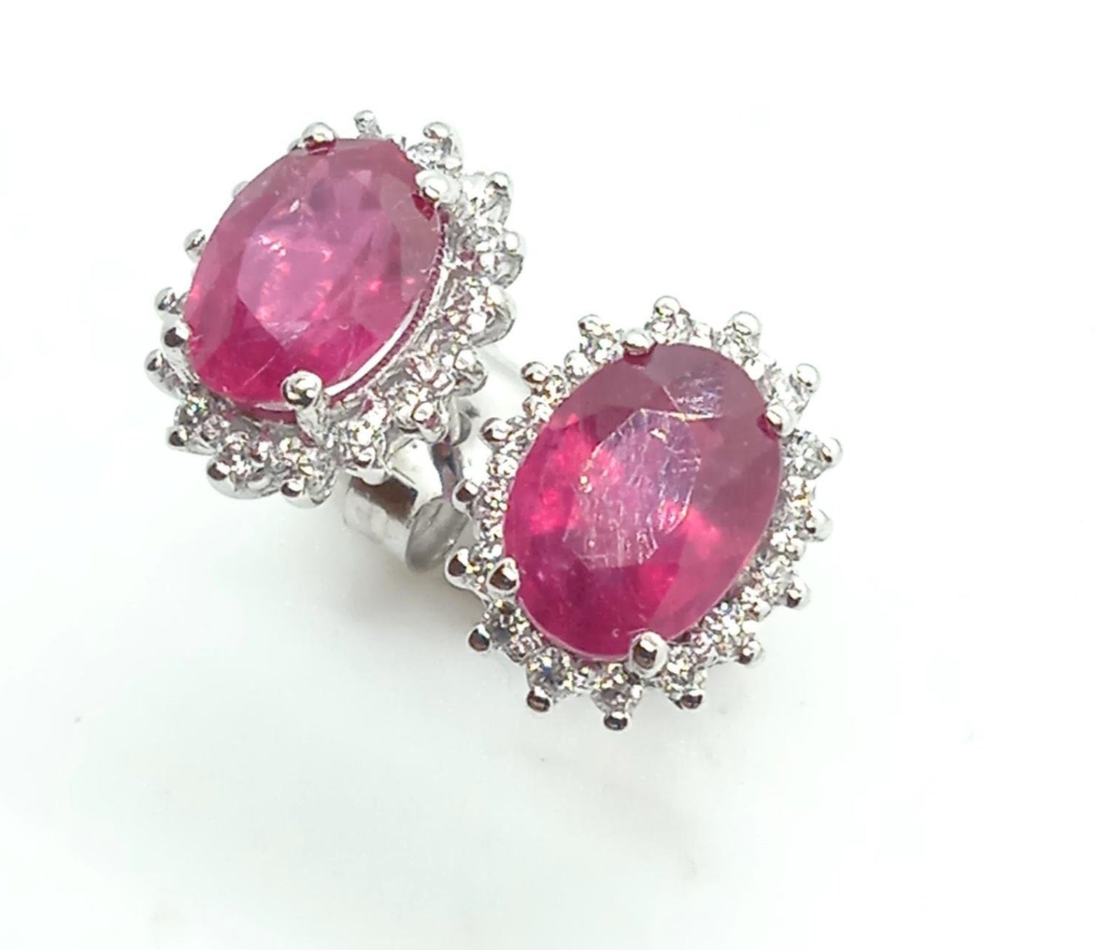 Al centro degli orecchini ci troviamo 2 Rubino glass filled naturale da 0.60 carati cadauno per una caratura stimata di 1.20 carati
