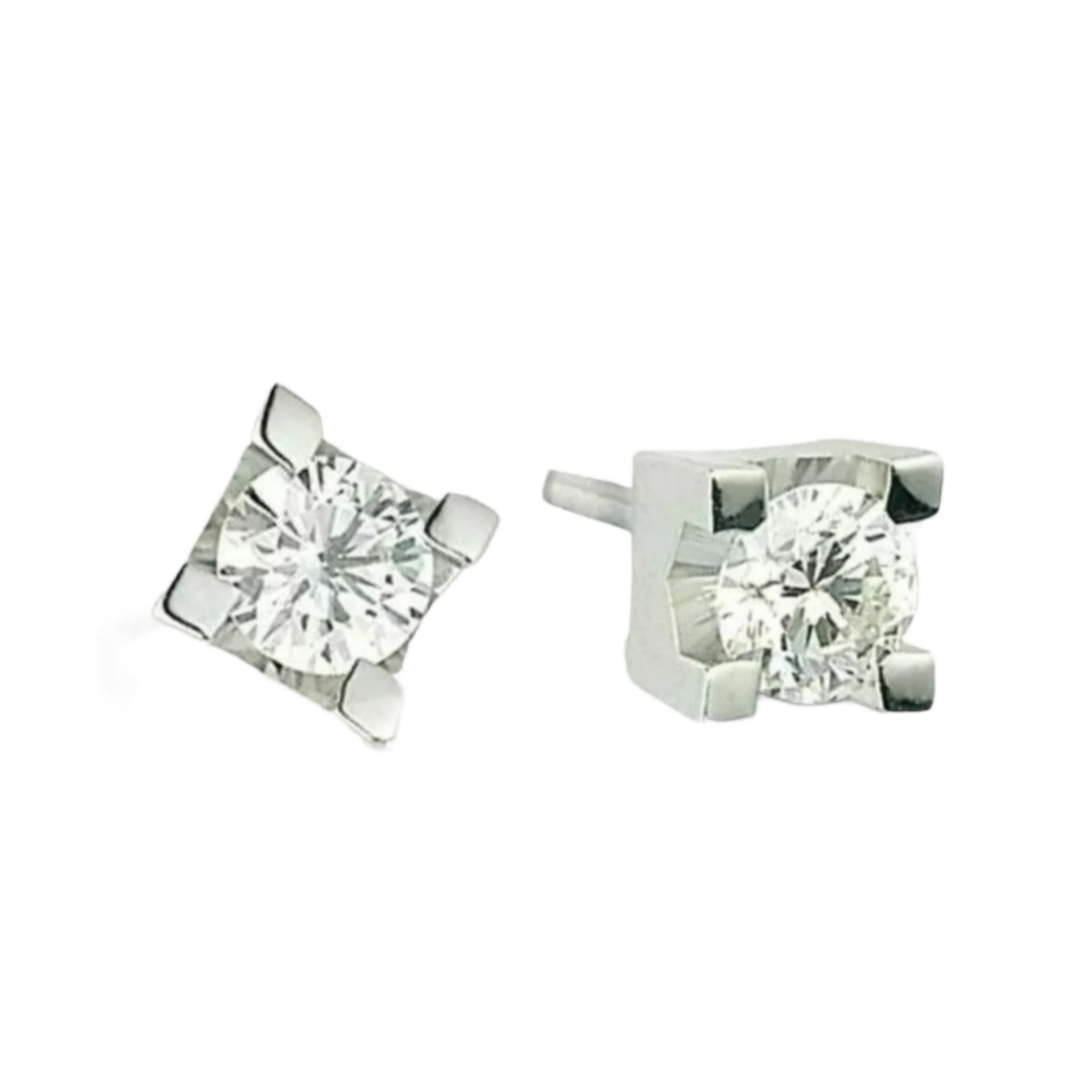 orecchini punto luce quadrato in oro bianco 18k e 2 diamanti naturali 0,90 ct