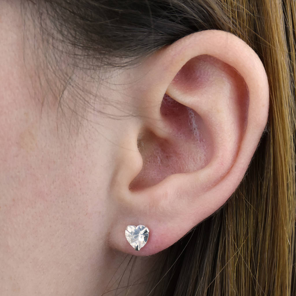orecchini punto luce in oro bianco 18k e 2 diamanti naturali taglio cuore 0,30 ct