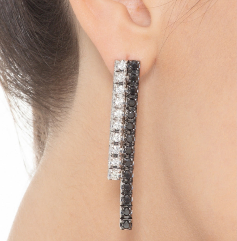 orecchini tennis in oro bianco e 2 fila diamanti naturali neri e bianchi 1,44ct