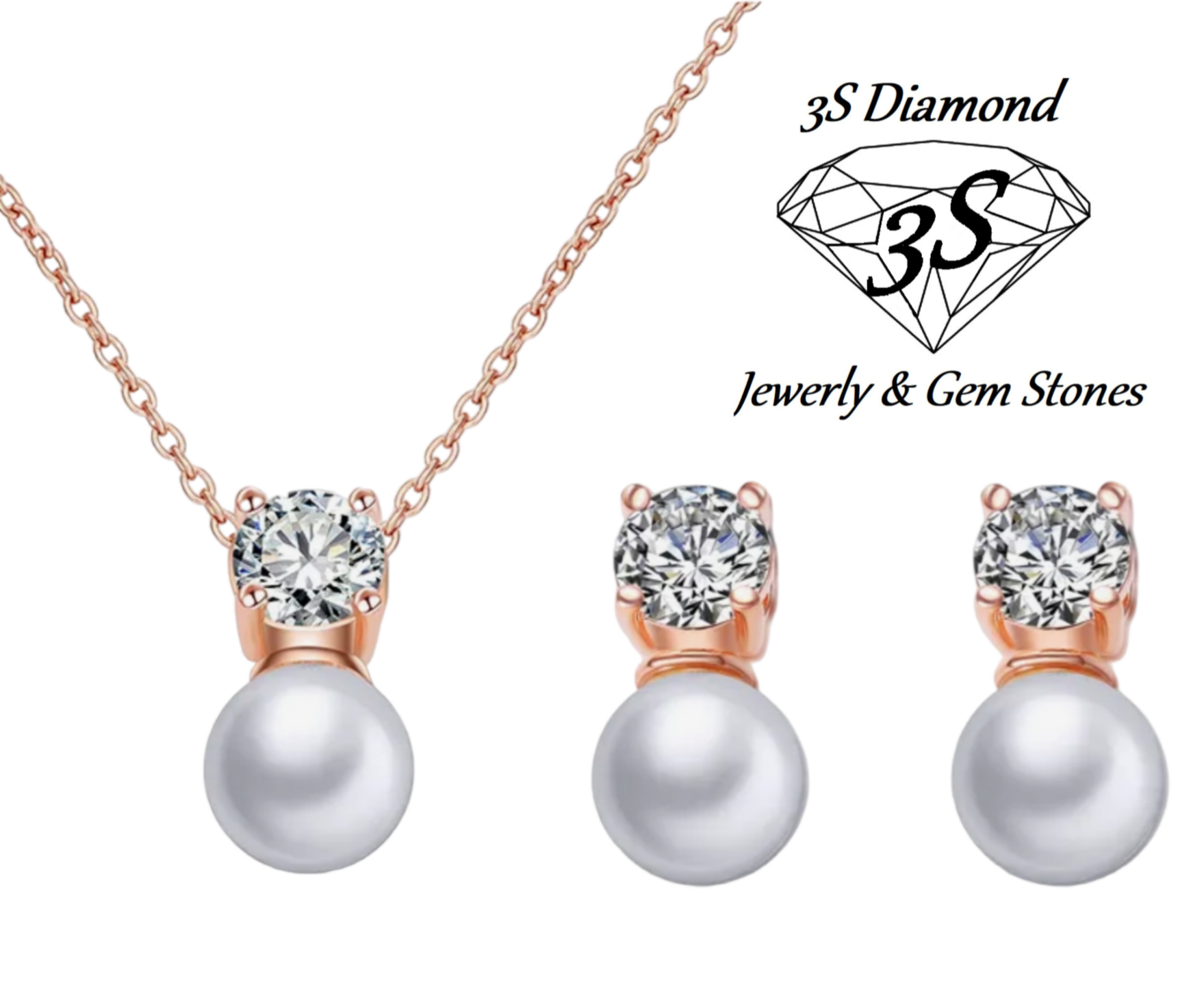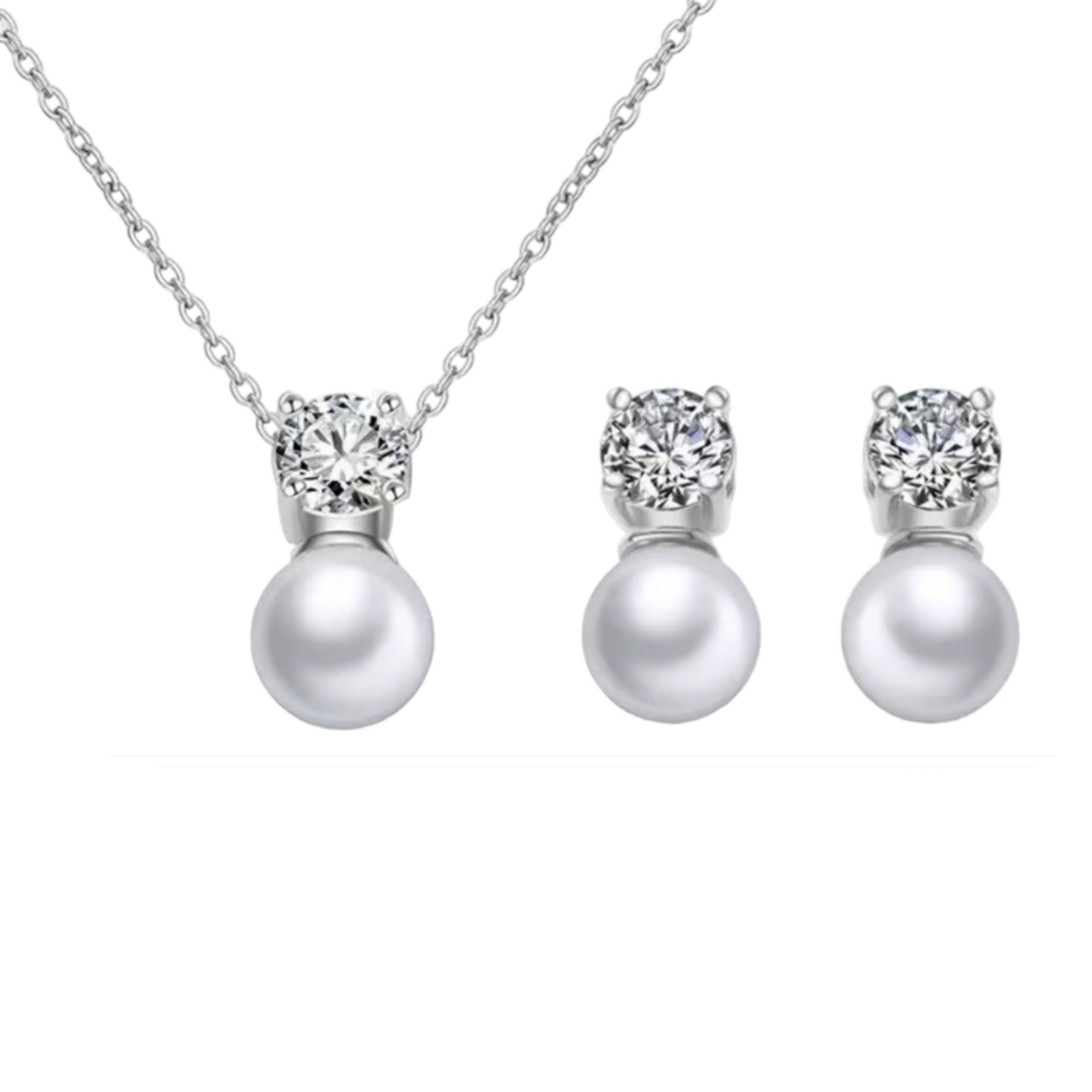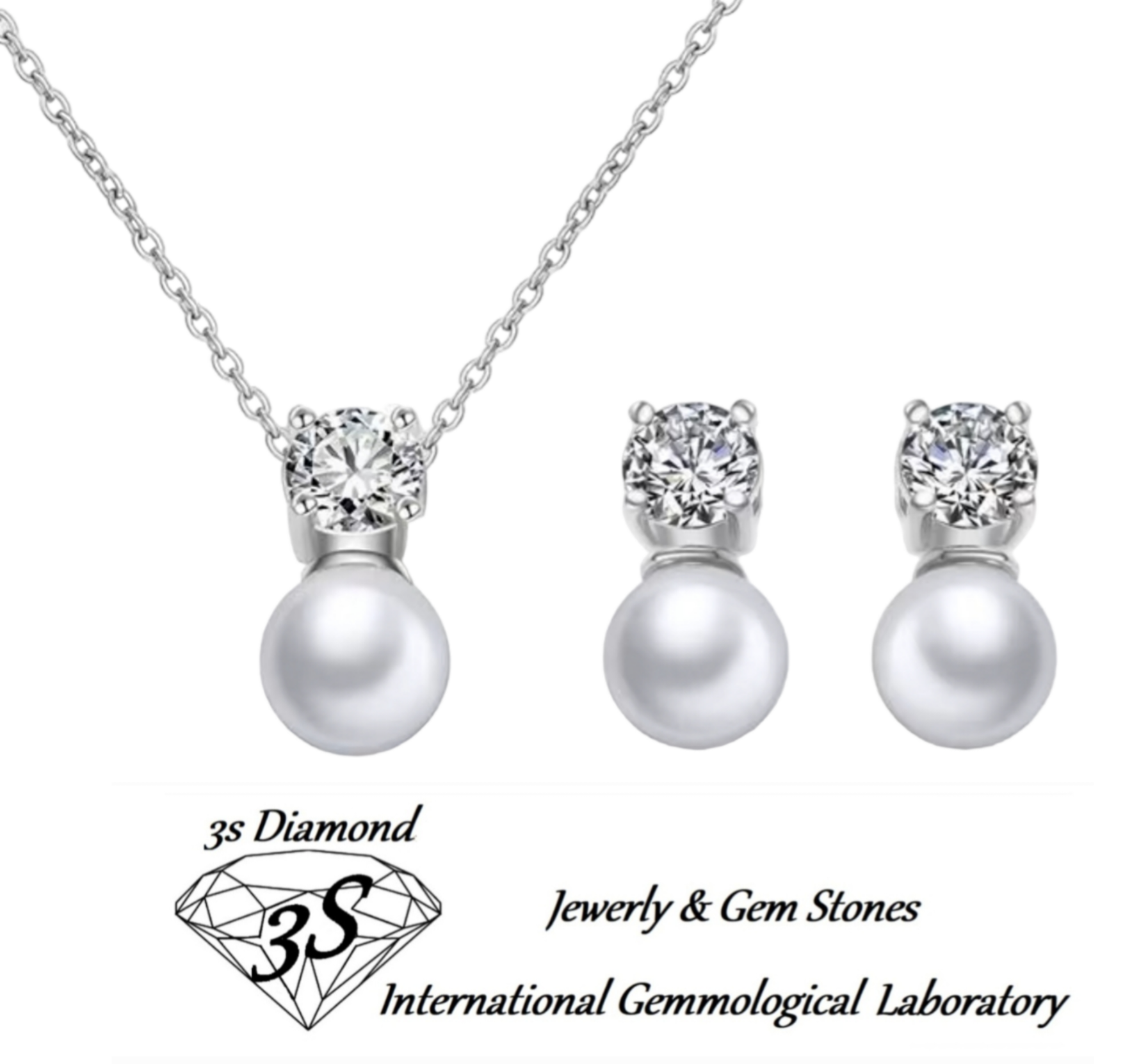 set completo collana e orecchini con perla naturale bianca e diamanti naturali 0,30ct color E VVS1