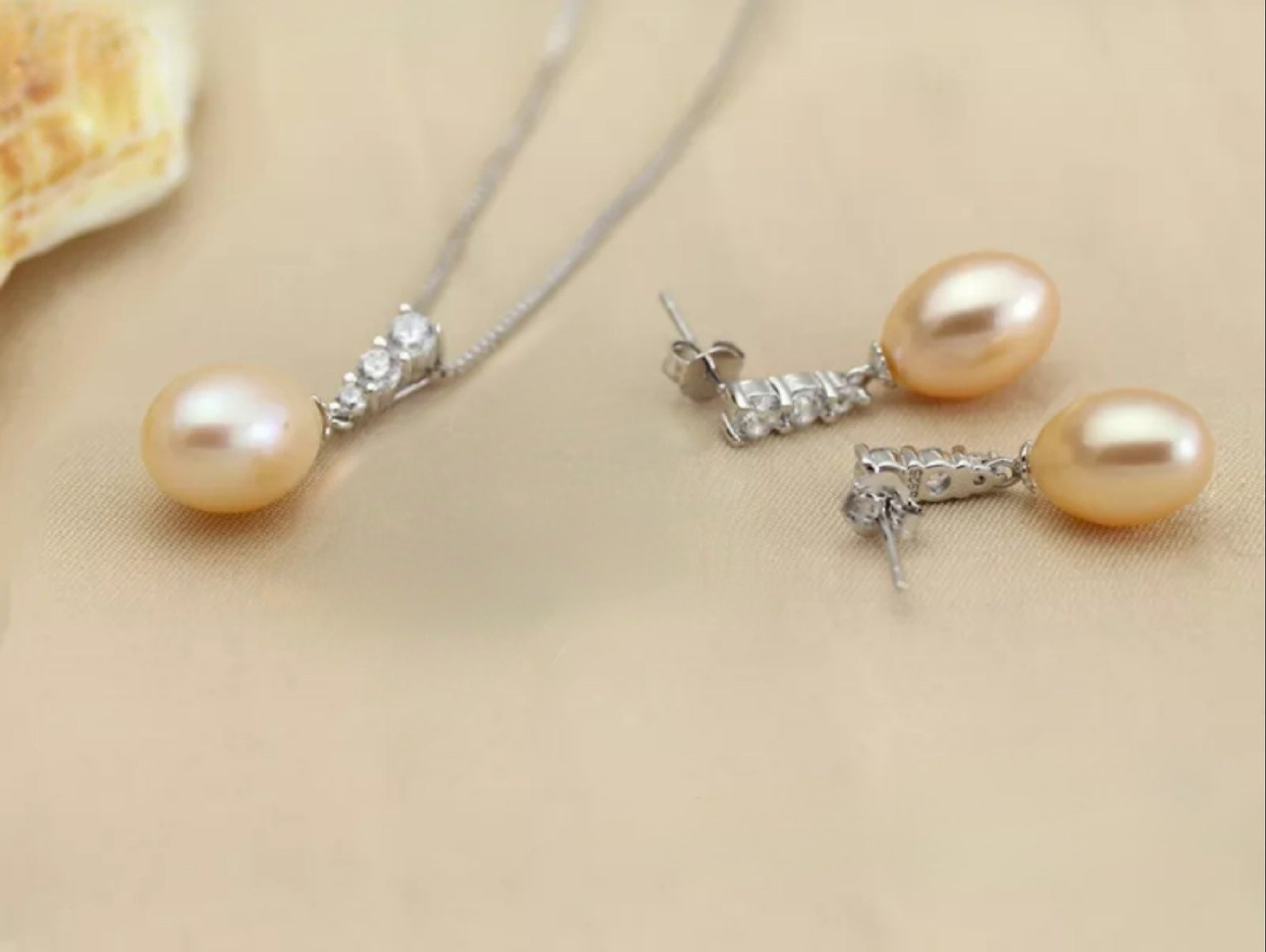 set completo trilogy collana e orecchini con perla naturale bianca diamante naturali 0,90ct Color E VVS1
